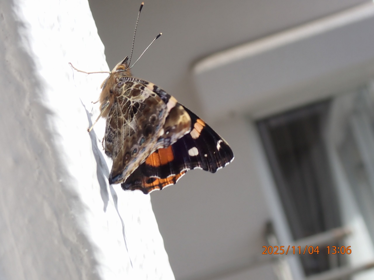 このあと羽ばたいて壁に止まり、ほどなくどこかへ飛んで行った。