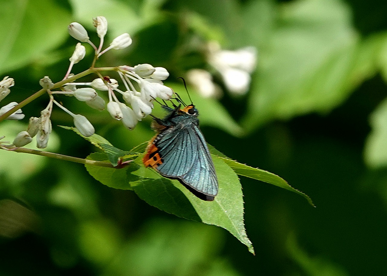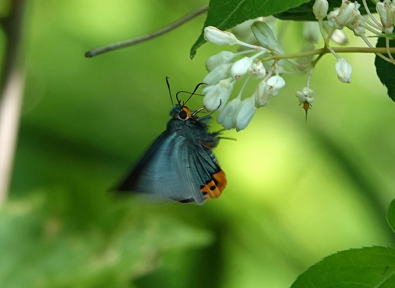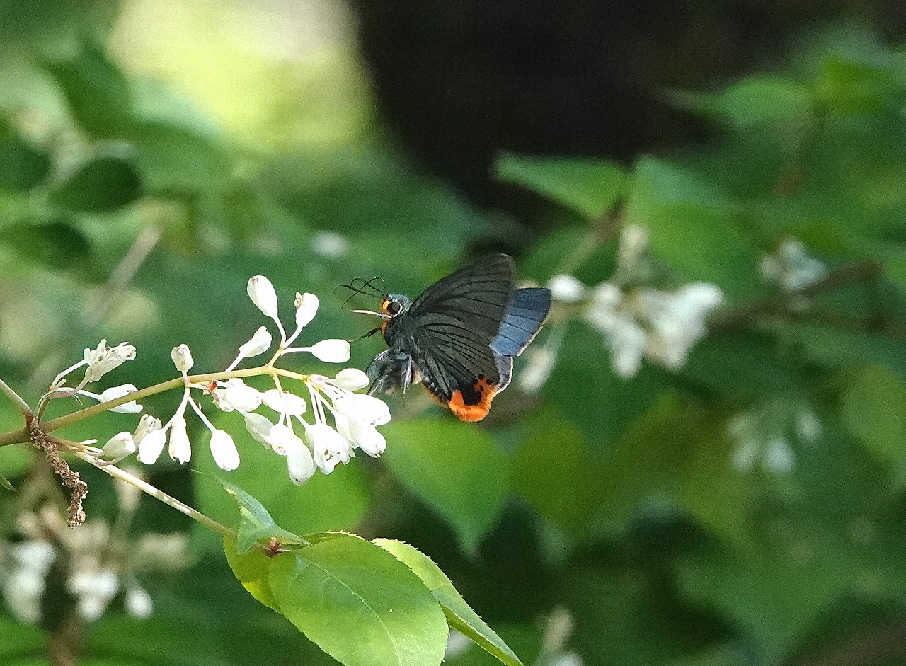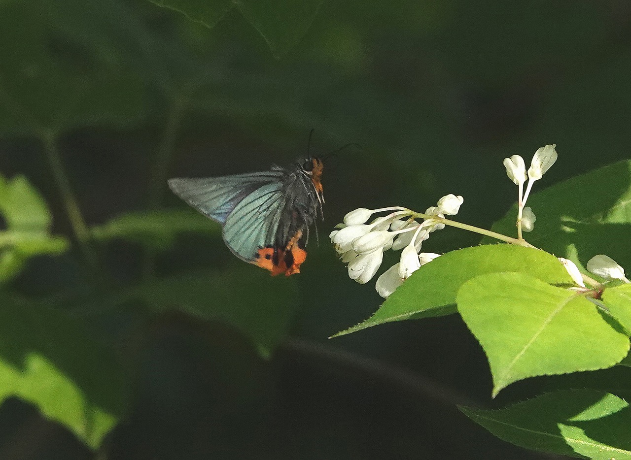 トップはウツギに飛来して吸蜜し始めた途端のアオバセセリ。シャッターの連写設定をしそこなったため怪我の功名というか結果として躍動感がよりいきいきと伝わってくる。