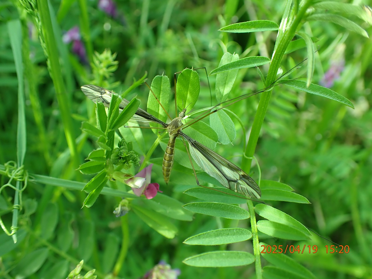 目当てのチョウがいなくて手持無沙汰で何気なく撮った一枚だが、久しぶりにガガンボをよく見てみた。正式な名前までは確認できなかったが(キリウジガガンボというのによく似ている)、とりわけこのガガンボは翅がすっきり透明で綺麗だと感じた。さらに、平均棍(翅の付け根に先が丸い細い棒状のもの)があるので、ハエと同じ仲間だということがよく分かる。この平均棍はチョウなどで言うところの後翅が変化したものらしい。 この日狙っていたのはミヤマチャバネセセリ、ついにこの日も姿を現さなかった。