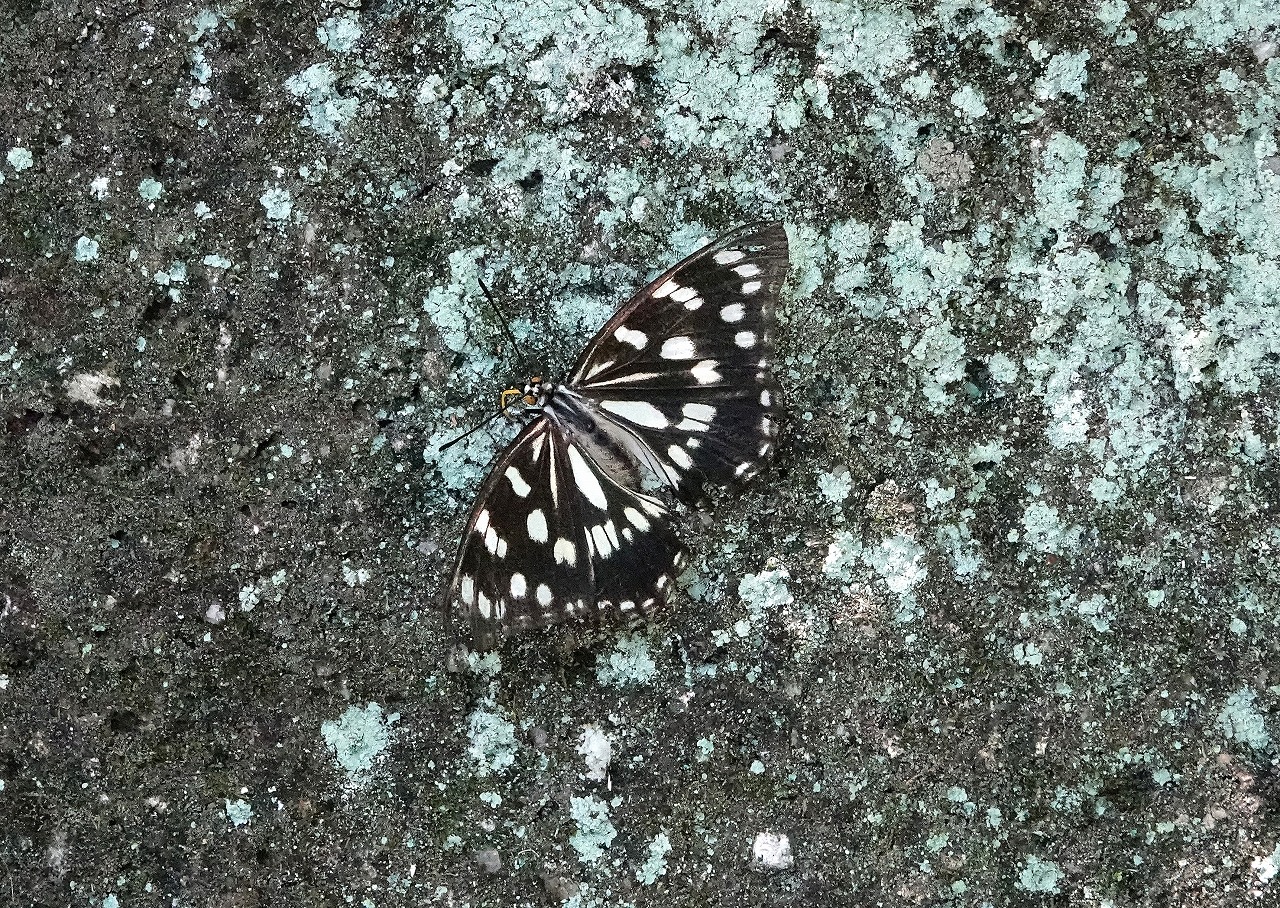 あまり見ることのなかったゴマダラチョウを最近、こちらでも多摩川でも時折見かけるようになった。決して個体数が増えているわけではなさそうなのだが、ご縁? 擁壁のウメノキゴケ(?)でミネラル補給している。
