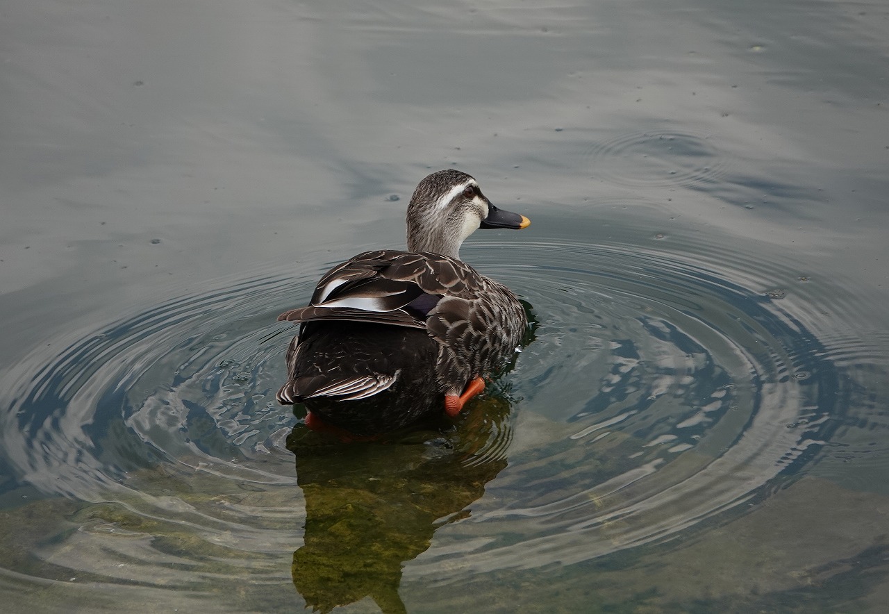 ↓ こちらはカルガモ、オス・メスの区別は微妙なので難しいがおそらくオスだろう。留鳥なので渡りをしないのだが少し引っかかるのはこのカルガモとマガモのハイブリッドで俗称「マルガモ」というのがいるが、こいつは渡りをするのだろうか? 渡り鳥のマガモと留鳥のカルガモ?? これまで撮ったマルガモは全て冬季でいつもカルガモの中に混じっていたが、春になって突然一羽だけマガモの血が騒ぎ群を離脱し飛立つというのもなんとなく考えにくい