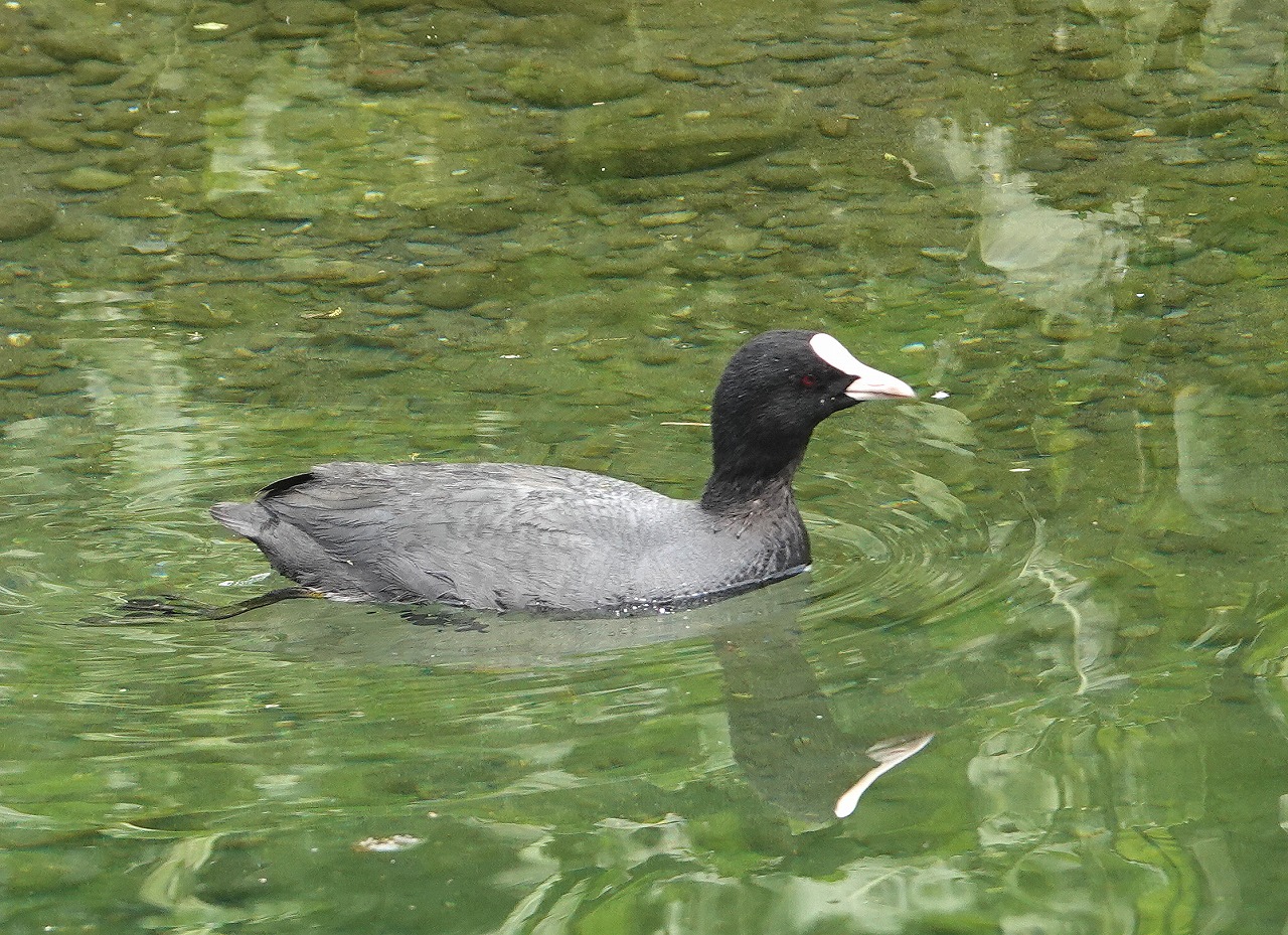 ↓ クイナの仲間のオオバン。赤目