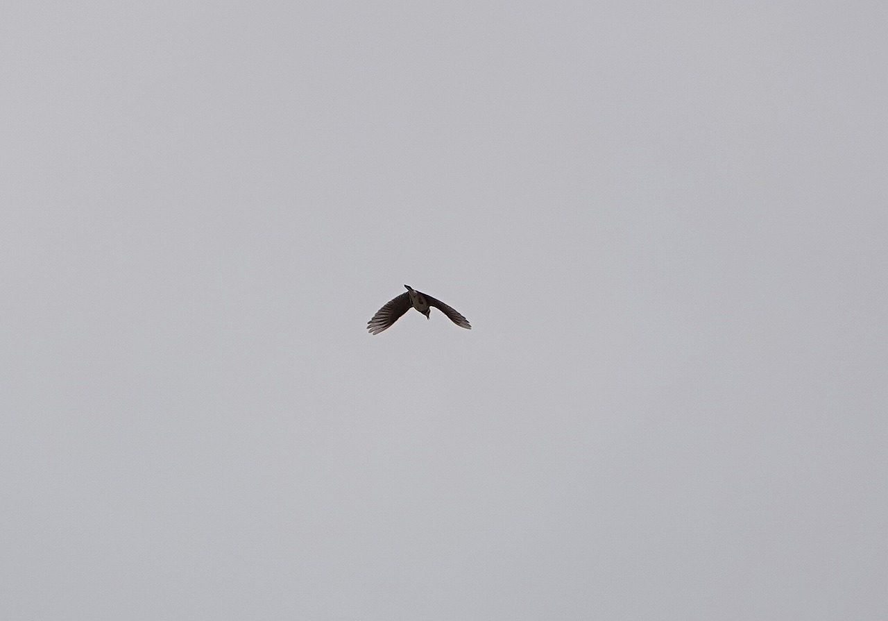 ↓ ヒバリが遙か上空で鳴き続けている。羽ばたきながら、切れ目なくあんなに長時間鳴き続けられるというのはいったいどういうメカニズムなのだろう?