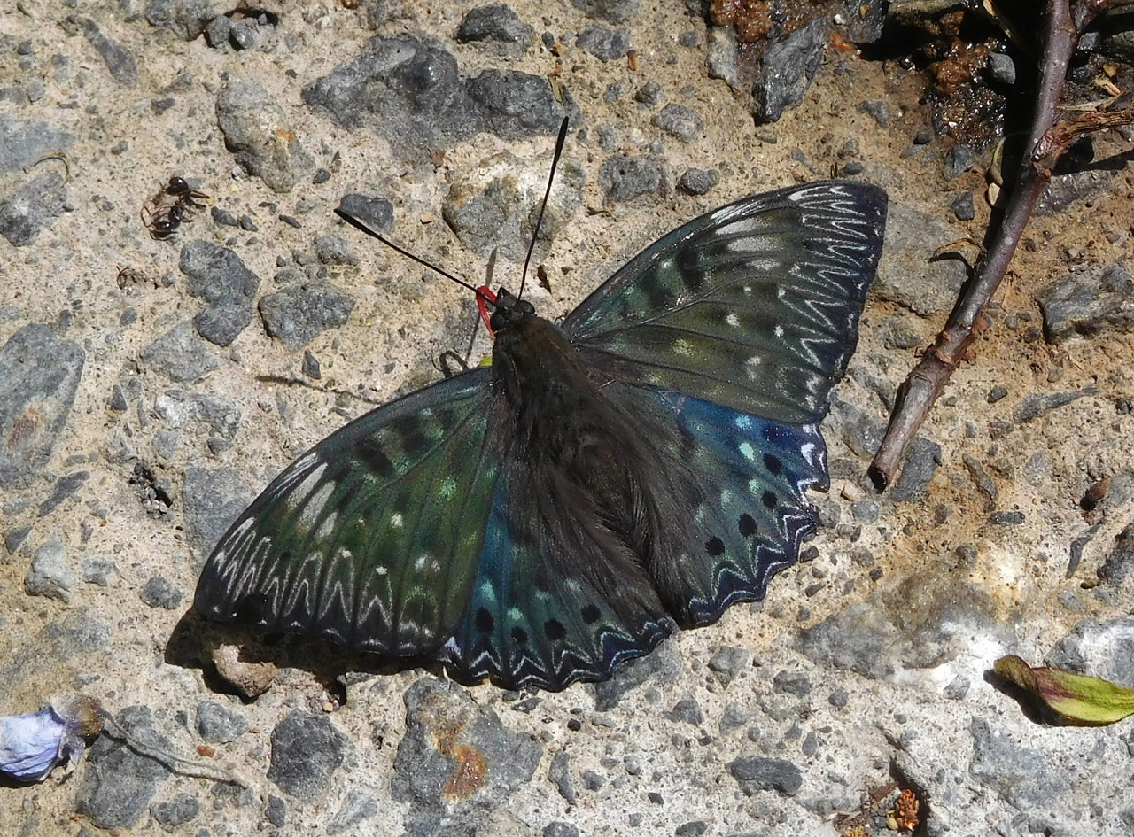 ↓ 参加者の中で唯一撮影に成功したスミナガシ・・・みなさんの賞讃を浴びたものの、ウーン、この画像は・・・もろに地面の獣糞の上で赤い口吻を伸ばして吸汁していて生々しすぎてアップが憚られた、生態とはいえちょっとね~・・・ということで以前の地面とまりの画像を代わりにアップしました