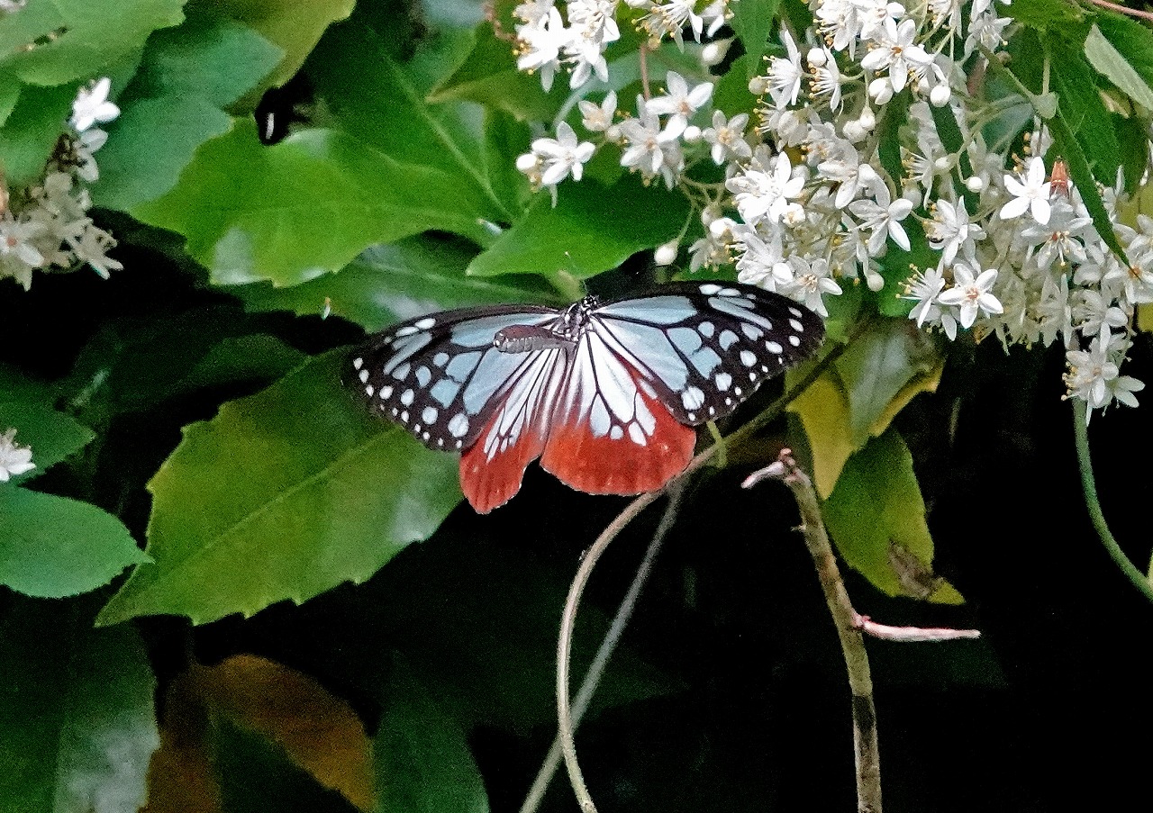 ↓ アサギマダラ マルバウツギの花にアオスジアゲハとともに飛来していた