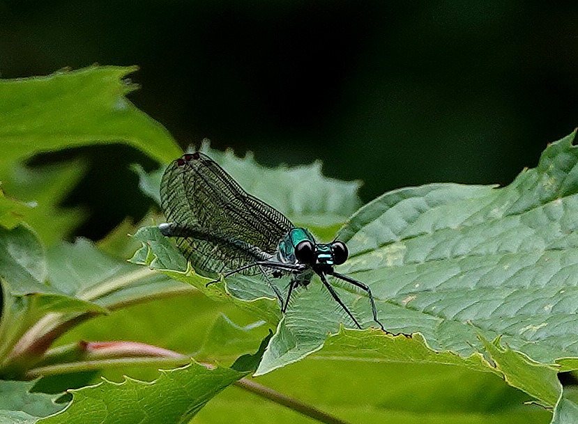 ↓ アサヒナカワトンボ 渓流を飛ぶ。緑の輝きが美しい