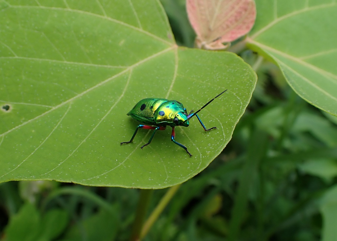 ↓ 小学生、またもや発見。アカスジキンカメ。沖縄のナナホシキンカメと並ぶ美麗種