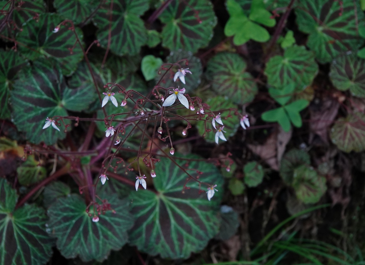 ↓ 渓流の水際にはユキノシタが咲き誇る。地味ながらアップで見ると割と派手