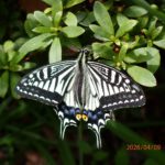 この日の朝、オアシスの中で羽化直後のようなアゲハのオスが1頭いるのを見つけました。おそらくこのオアシスのどこかで今朝羽化したばかりの、いわばオアシス生まれの第一号と思われます。翅もまだしっかりとは固まっておらず力がまだ少し弱いようで、あまり激しく羽ばたきもせず、ちょっと飛んではあちこちの葉に止まっては翅を休めていました。先日のカラスアゲハのように寄生されることもなく、また鳥に襲われることもなく無事羽化までできてよかった。