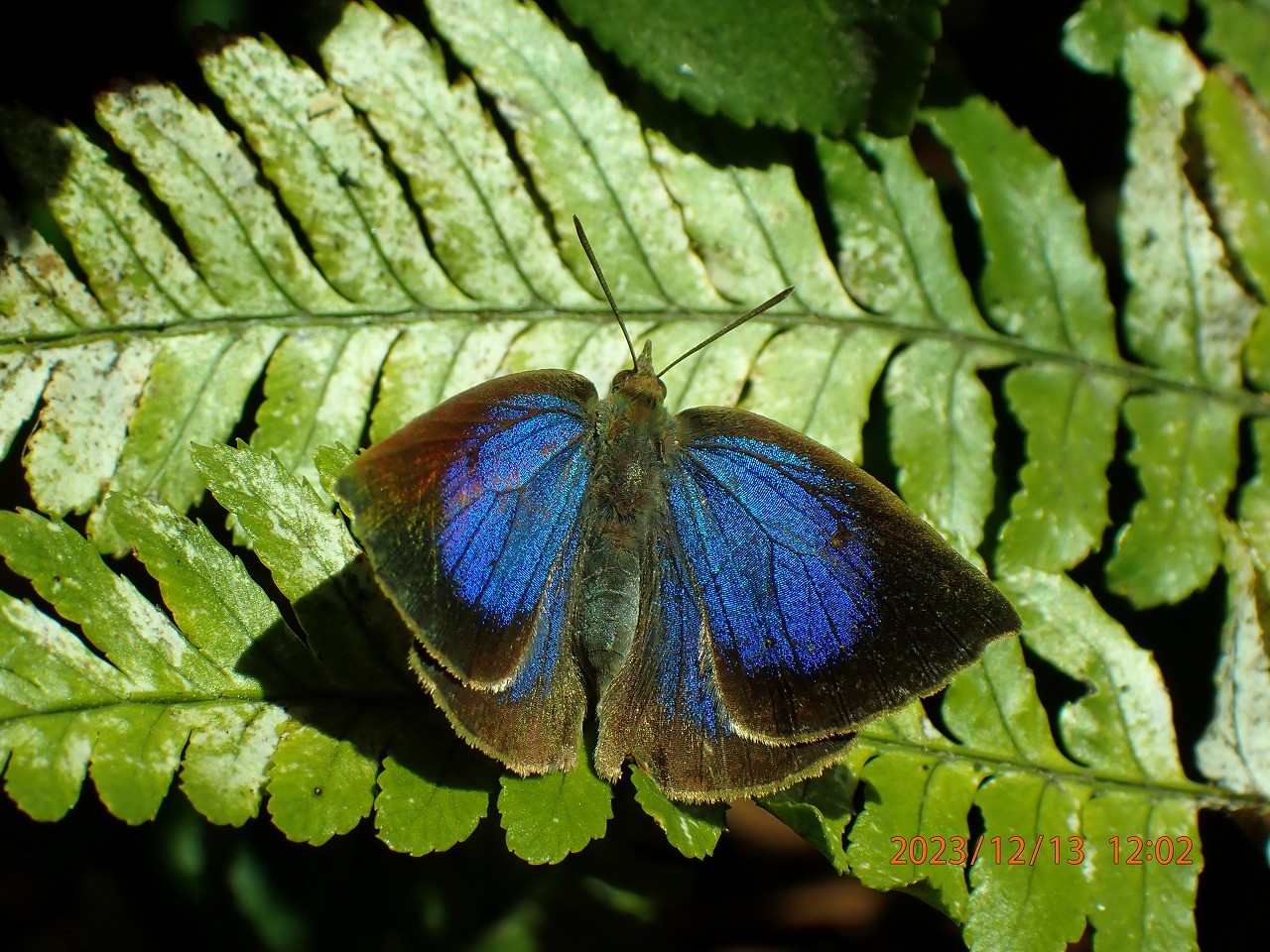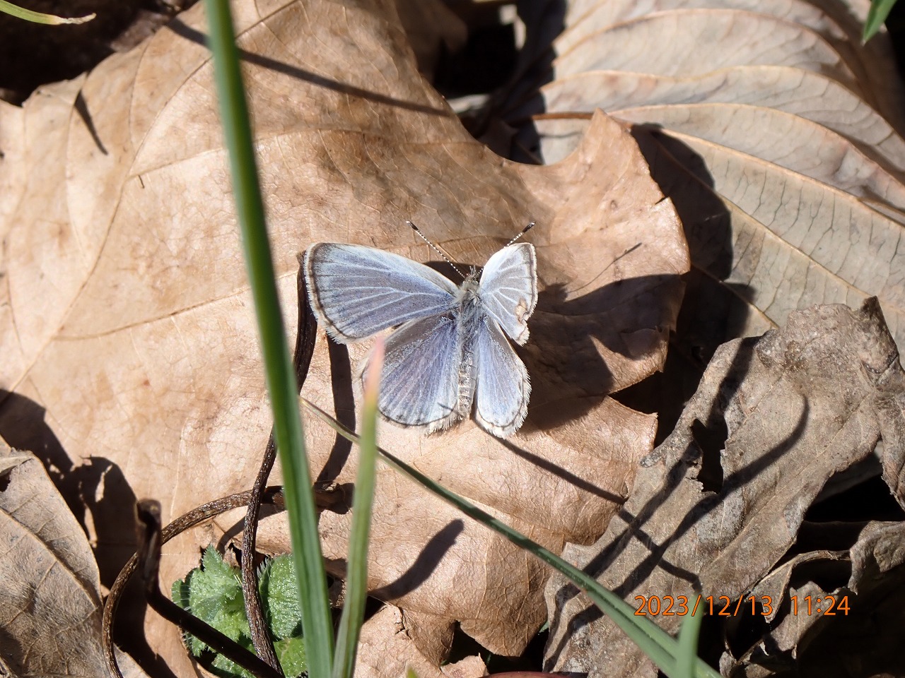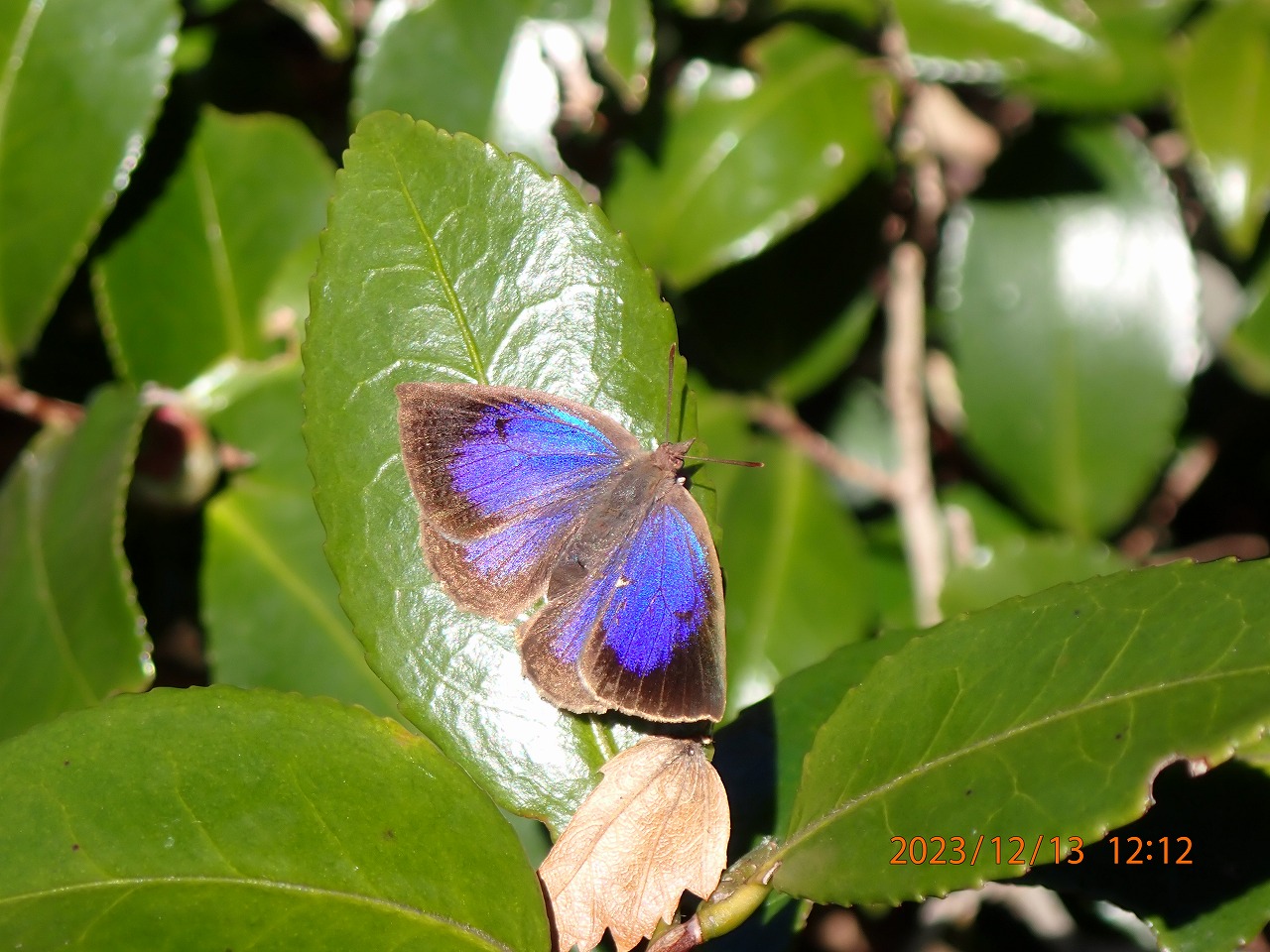 この日(12月13日)は気温は低いが陽射しがあり、陽だまりは割と暖かく感じられたので、生田緑地を散歩しながらチョウを探した。それほど期待していたわけではないが、いくつかの出会いがあった。ムラサキシジミ、ヤマトシジミ、ツマグロヒョウモン。キタキチョウの写真は撮れなかった。