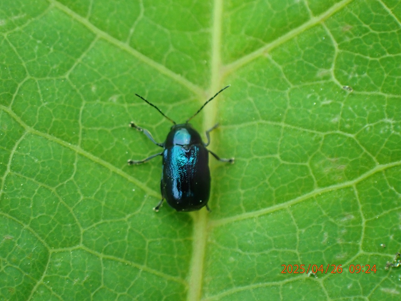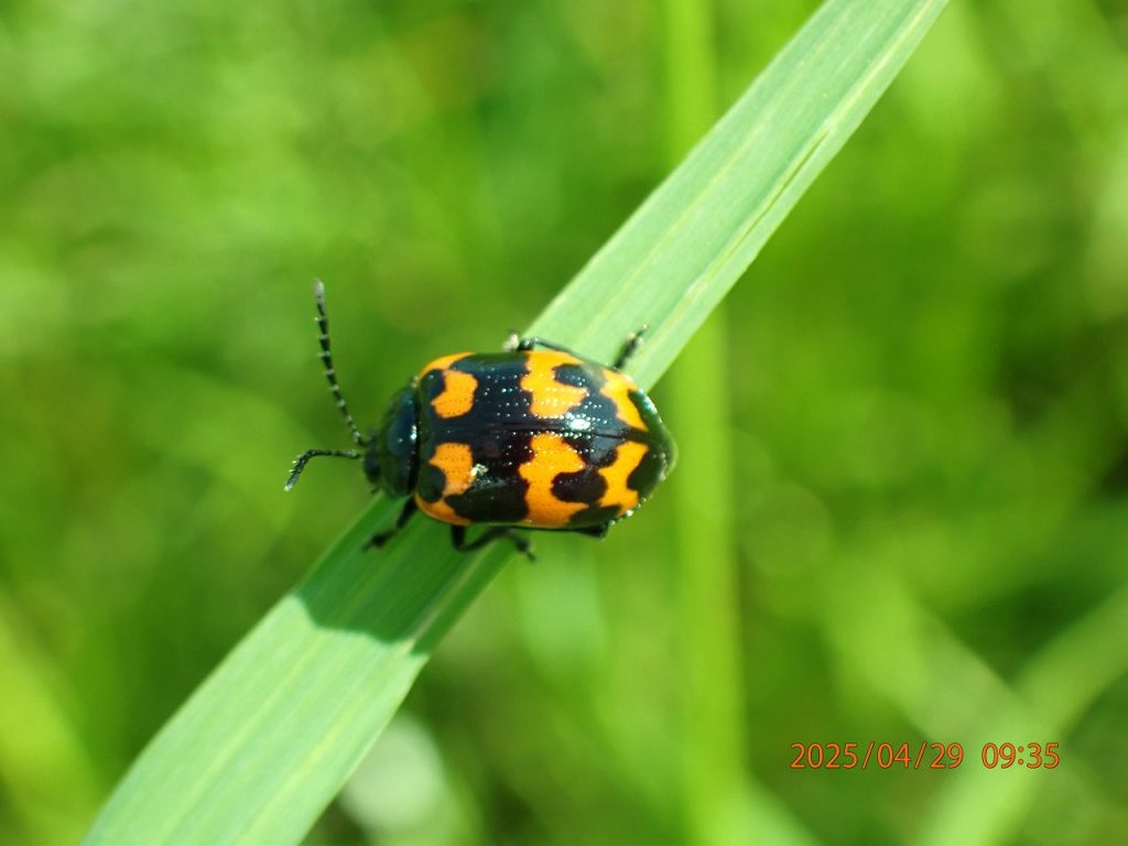 4月になって多摩川の土手は緑が急に鮮やかになってきた。その中でもイタドリの成長は目を見張るものがある。太い茎をのばし大きな葉を広げ、周りの草より格段に大きく育っている。そのイタドリの葉にはいろいろな昆虫がやってきているが、今日はその中でハムシ類をご紹介しよう。