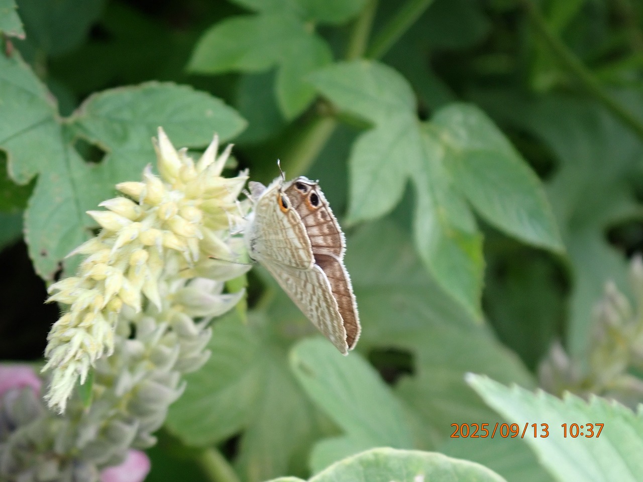 9月も半ばになって、徐々にその数が増えてきたウラナミシジミ。河川敷のクズの群落の辺りを飛び回り、まだ花の開いていない穂先にせっせと産卵してまわる。この日、結局卵は見つけられなかったが、こうしてたくさん咲いているクズの花から次世代が育ってくることだろう。