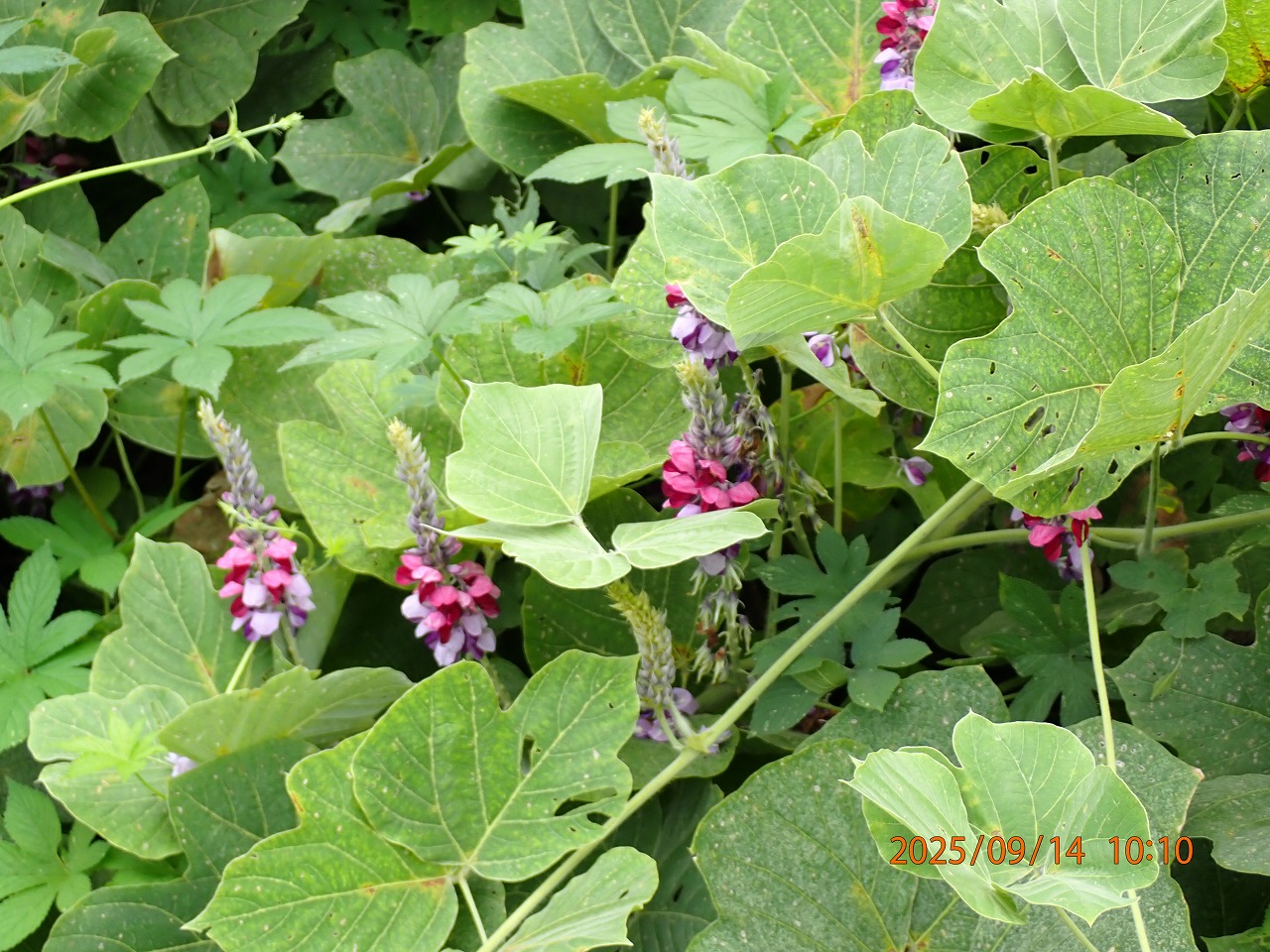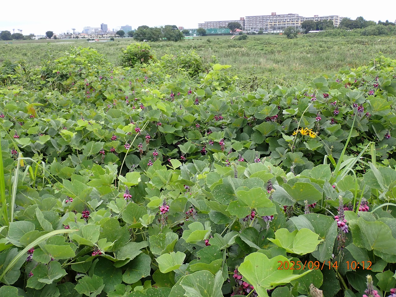 クズの群落。今年は例年よりも勢いはないが、一面クズとなっている。