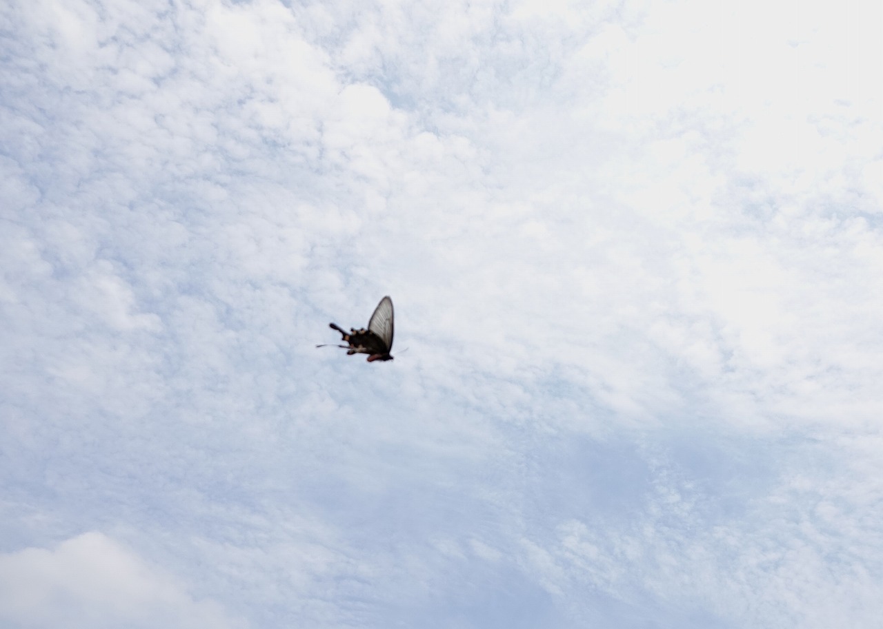 ↓ やはり・・・斜面の食草、ウマノスズクサ廻りをすれすれにゆっくりと飛びまわる