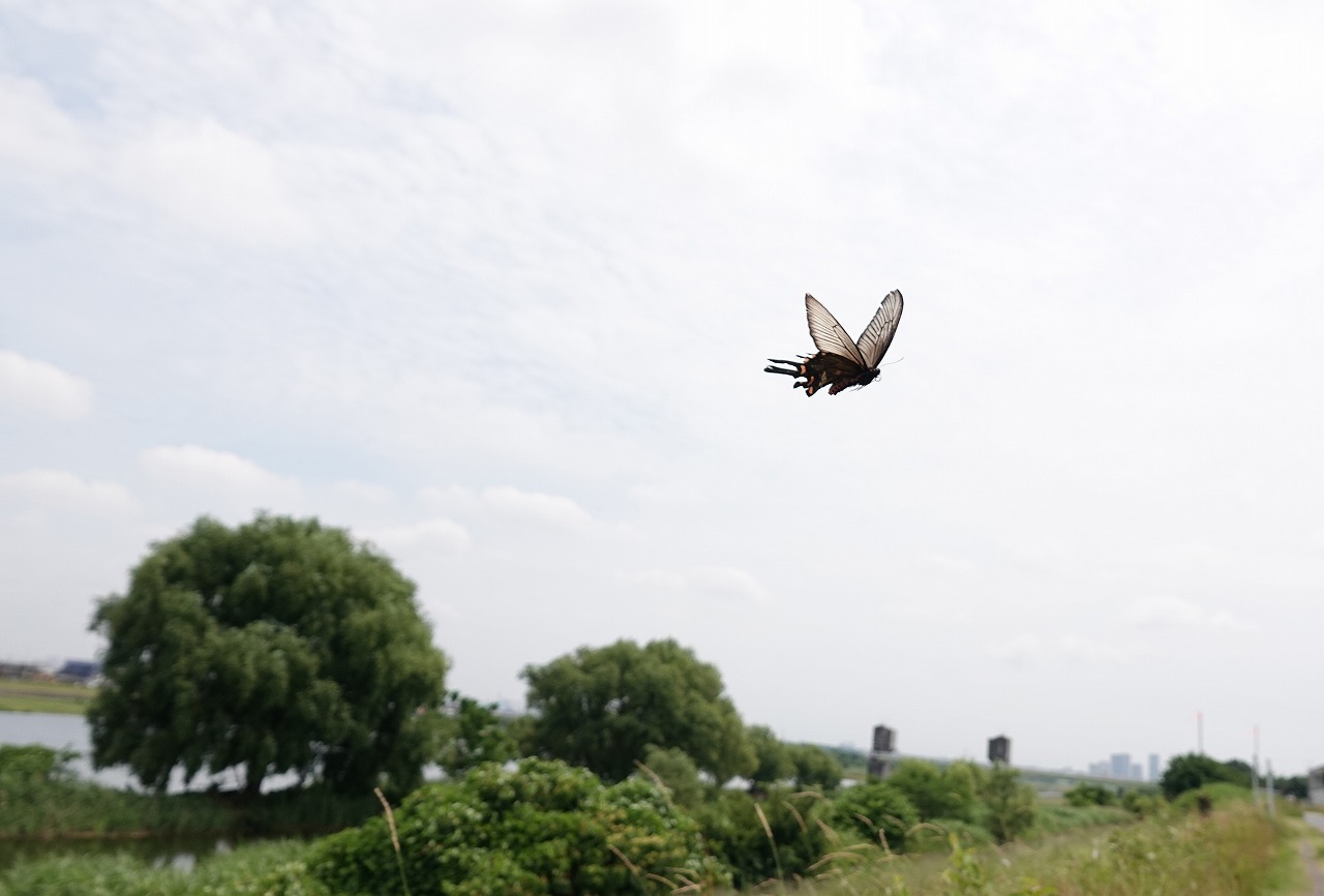 ↓ 中野島~登戸~宿河原の土手斜面にウマノスズクサは多いのだが、いつもタイミング悪く川崎市の除草作業が卵や幼虫がついた食草を一網打尽にしてしまうので最近では蝶の姿を見ることが少なくなった