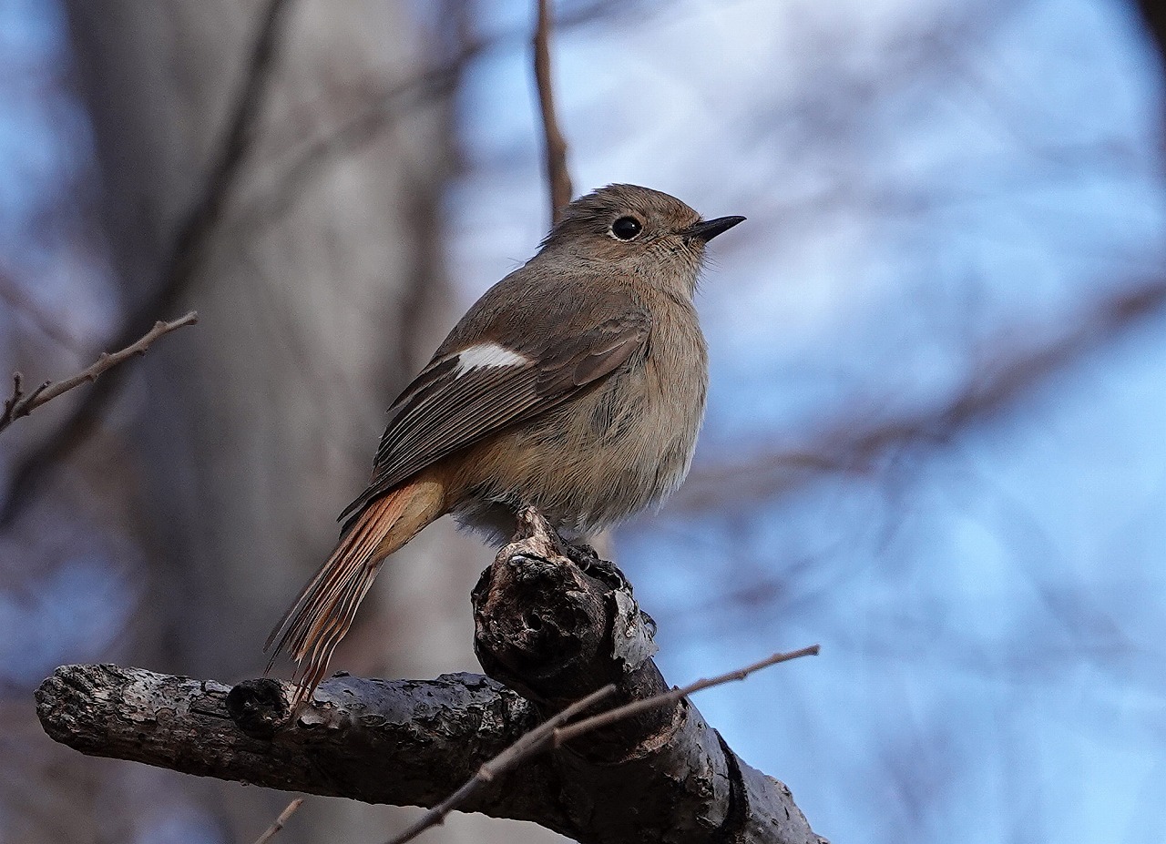ジョウビタキのメス。往々にして枝が邪魔して撮りにくいことがあるがオスに比べると色合いが地味。