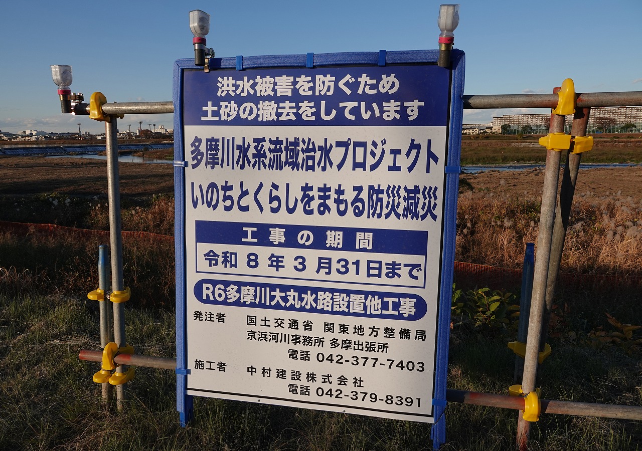 想像以上に広い範囲で土砂の浚渫・・・とは違う、このあたりが水に埋まるのは年に一度あるかないか、2019年のように土手近くまで上がったことはあったが(台風19号)普通は低木まじりの草地。ここの向かい側では毎年、調布の花火大会をやっている。表層の植物を根こそぎにしているので生態系にはまさに壊滅的打撃を与えるだろう。人間の「いのちとくらしをまもる」のだろうがこれだけの規模でやる必然性があるのか、どんな計算で決めてるか見当もつかない。上流の聖蹟桜ヶ丘には野鳥のパラダイスのようなところがあった「らしい」。一昨年、過去の情報で行ってみると大規模な護岸工事が何年も続いていて、鳥など広範囲で影もなかった。まあ、カラス多数と水鳥少々、ジョウビタキを一羽見たくらい。
