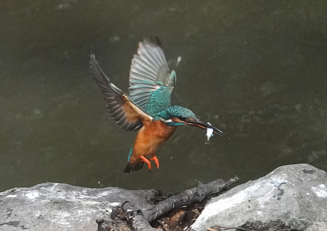 ⑤1秒足らずで離水、周辺のとまれるところに向かう、しっかりエモノはゲットしている