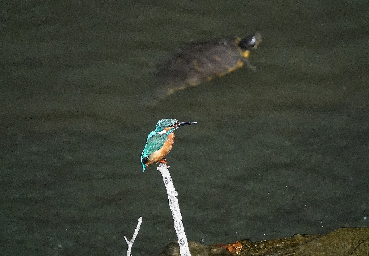 ↓ コサギがいなくなるとすーっとカワセミが元位置に戻ってきた