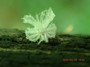 ↓ ・・・と、ちょっとオスのヨレヨレぶりが胸に刺さったのだが杞憂だった・・・撮影画像を再度確認していると、なんとなんと、トップと2番目の画像の間に撮影していた連写画像の中に、ピンボケながら明らかな交尾が捉えられていた。撮っていて気がつかなかったというのも?? (-_-;) だが、写真整理の過程で名前も付けない雑画像の中に埋もれていたので危い、危ない! 求愛給餌行動(プレゼント)の後に交尾に至るというのが多いらしいが逆があることも知られていて今回はまさに後者であった