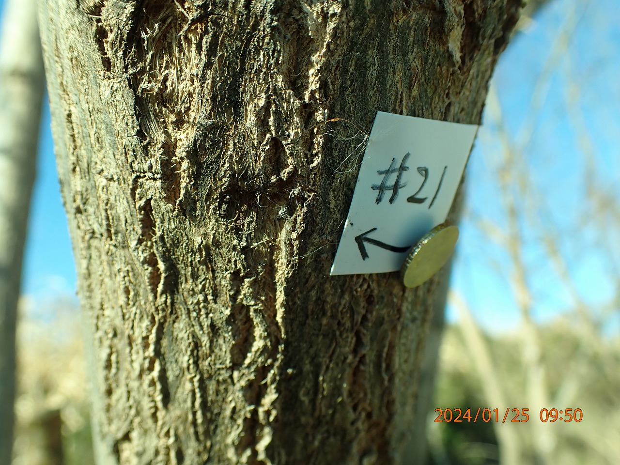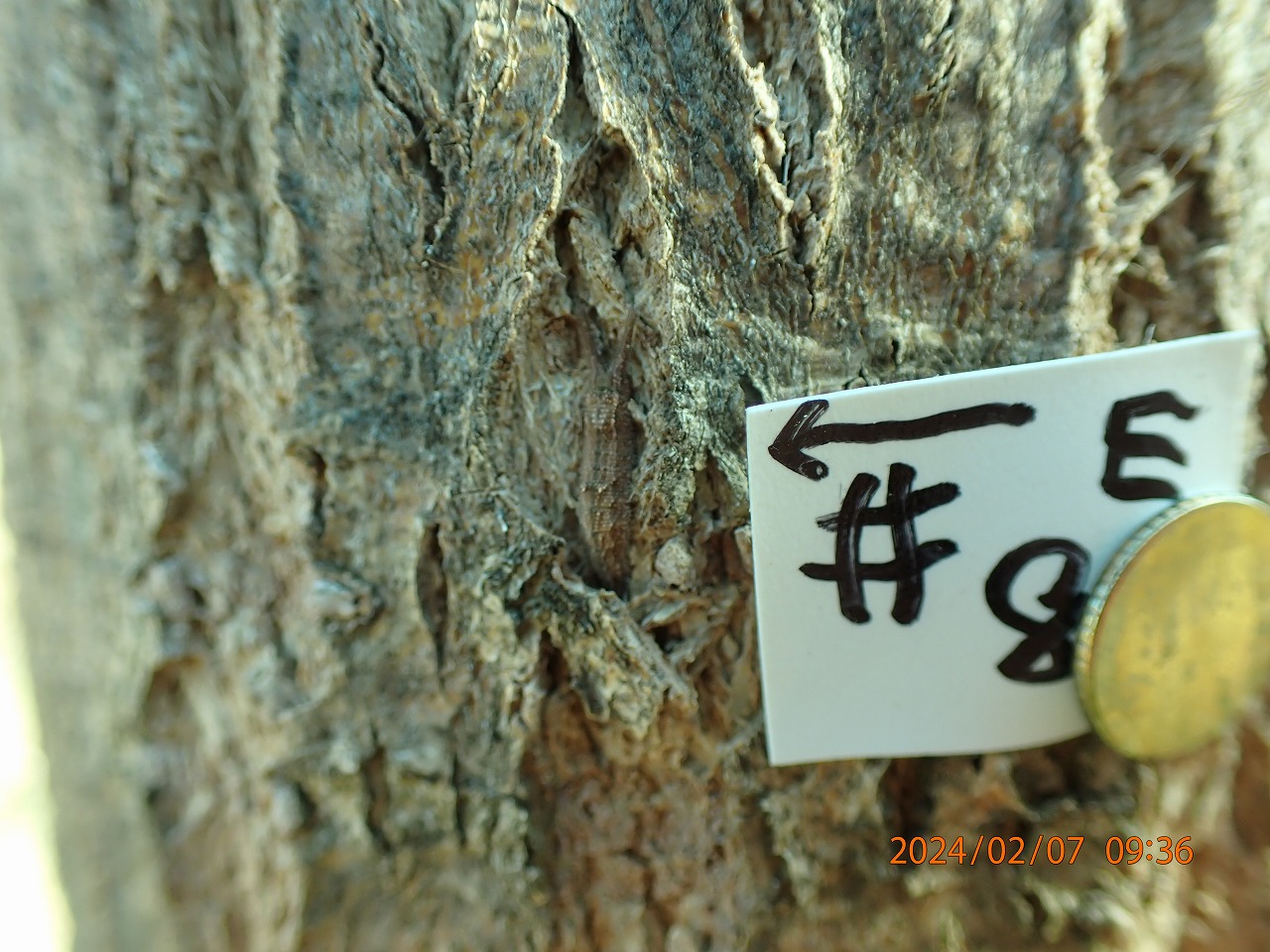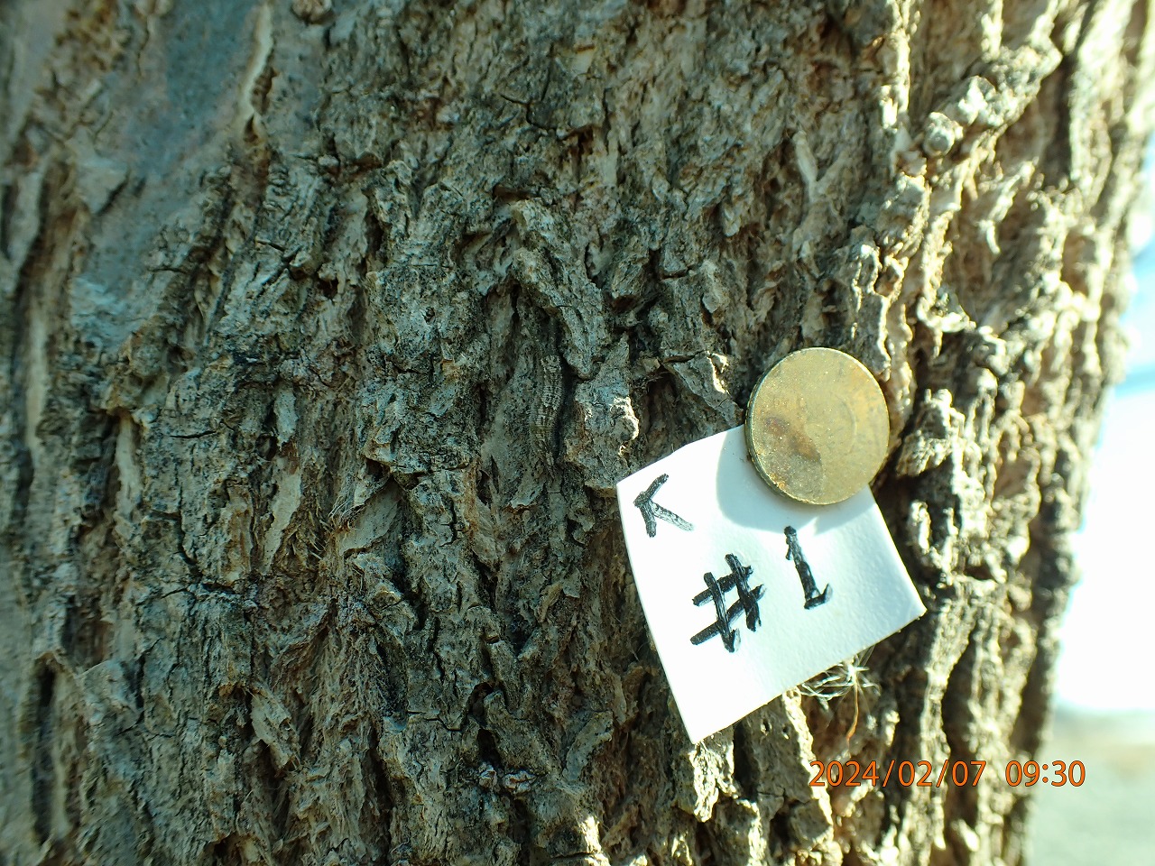 この2つは、どちらも冬眠からの覚醒が近いような動きをしていたものだった。したがって、これらは#21のように死んでいなくなったのではなく、少し早く(早すぎ?)覚醒してしまって、自らその越冬していた場所を離れてどこかへ移動したと思われる。しかし、仮に高い木の枝先に移動してエサを探そうにも、まだこの時期にはヤナギは芽を出してはいない。新芽が出るのはまだ1か月近く先のことだろう。大きなお世話だが移動開始が少し早すぎたのではないか。エサが見つからないとなると、また移動先で芽が出るまで再びジッと我慢して待つことになりそうだ。ともかく、これから3月にかけて気温が20度に近い日も多くなる予報なので、どんどん覚醒が進むことも予想され、ますます目が離せなくなる。明日も見てみよう。