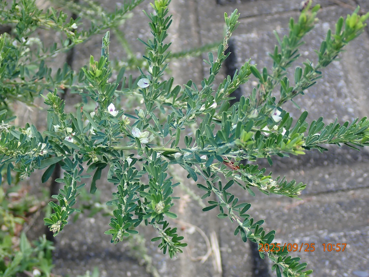 多摩川河川敷でメドハギが白い花をつけだした。ハギと名前には付いていて、一応ハギの仲間ではあるものの、このメドハギは少し雰囲気が違う。ハギは根元からたくさんの細い茎を伸ばし枝垂れるようにして丸みのある葉や花を付けるが、メドハギは茎が直線的にすっくと伸ばし、葉もハギのように丸くはなく細長い。河川敷などでも見られるマメ科の野草で、キタキチョウの食草でもある。