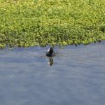 堰では、オオバンが圧倒的に多くカワウ、サギたちが混じっていたが、カモ類はマガモ、オナガガモ、オカヨシガモは姿を消しコガモ、ヒドリガモがポツリポツリと泳いでいた程度。トップはコガモのオスの飛翔、頭も翼鏡も青っぽく見えているが先月同じ所で撮影したコガモのオスの画像と比べると角度によって見え方が変わる構造色の特徴がよくわかる。