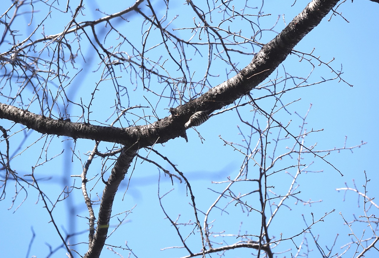 音がするのでいるのはすぐに分かるもののどこにいるのかを見つけるのは周りの木の反響のせいで結構難しい、また、見つけても真上のことが多くたいへん撮影しづらい・・・というところで何枚か撮った。