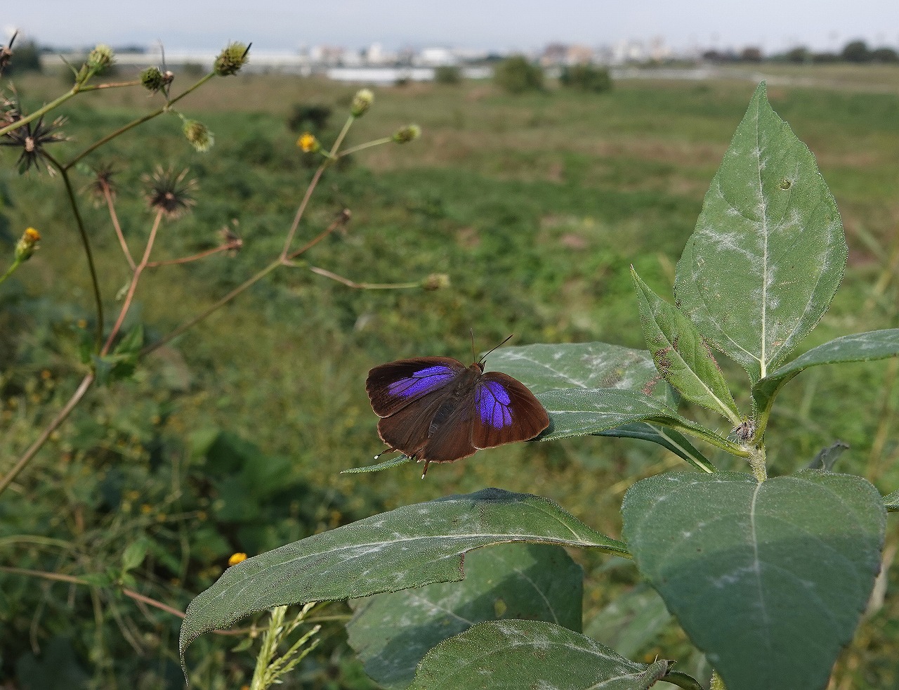↓ ムラサキツバメの翅表 (アーカイブ 2024年11月1日 多摩川中野島)
