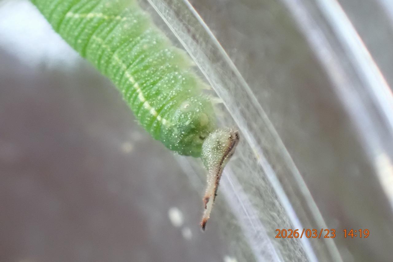 セミやトンボの羽化の時には、幼生時代の足、触角など全て1本ごとに古い殻から抜け出すことになるが、チョウの場合は古い触角から新しい触角が抜け出るということではないことが分かった。チョウは羽化の時でも蛹の殻の中で新しい体が完全に出来上がっていて、ただするりと寝袋から抜け出る格好だ。