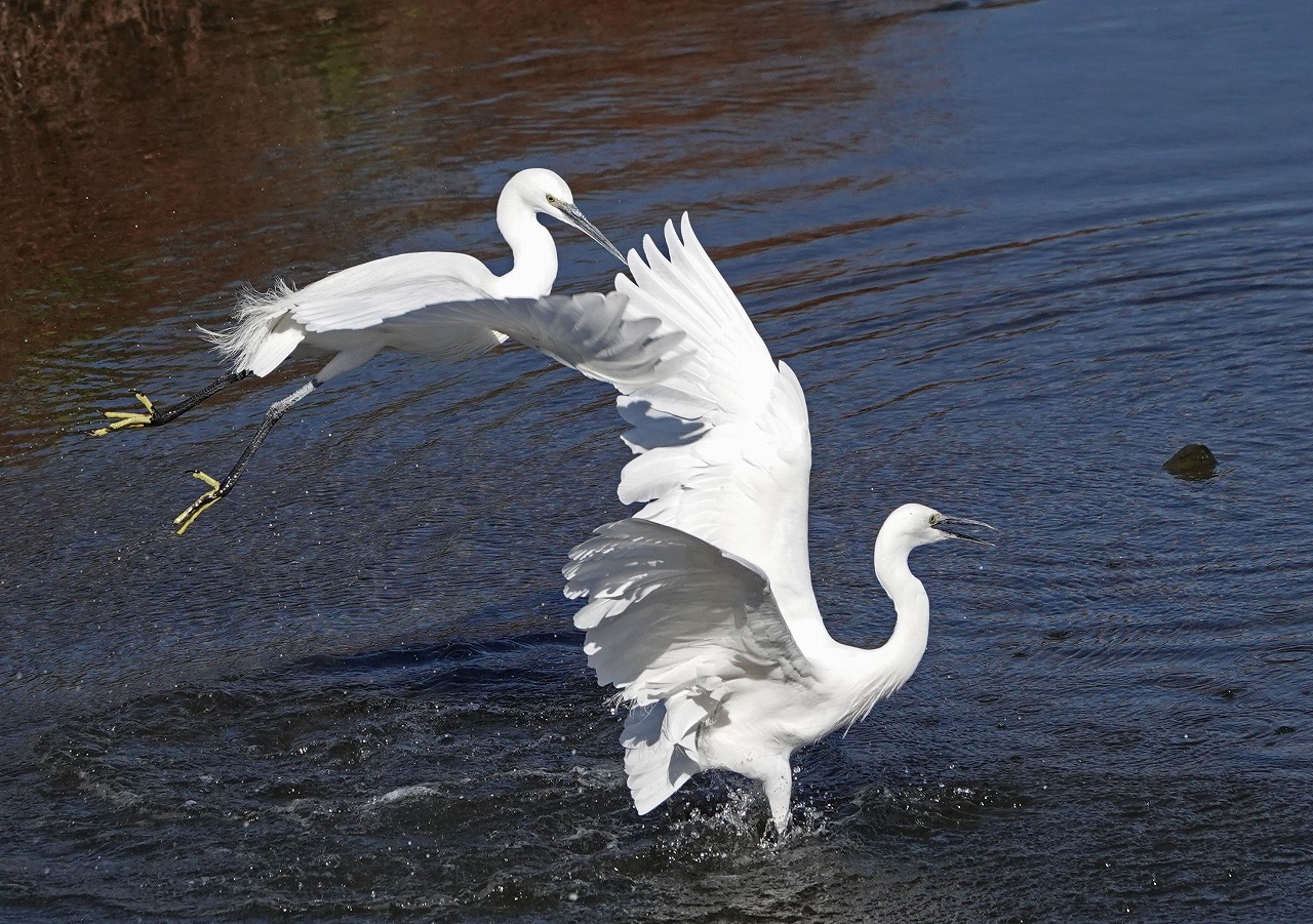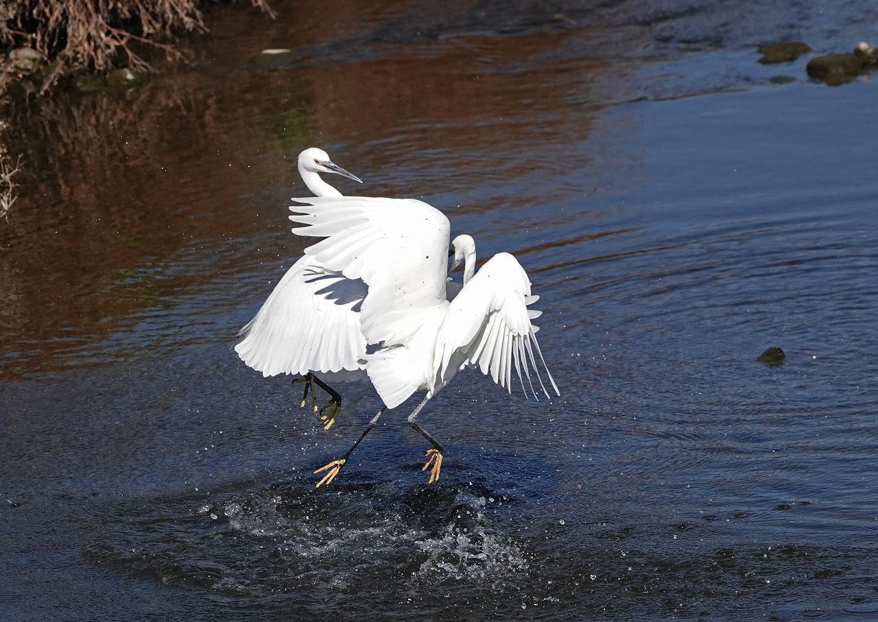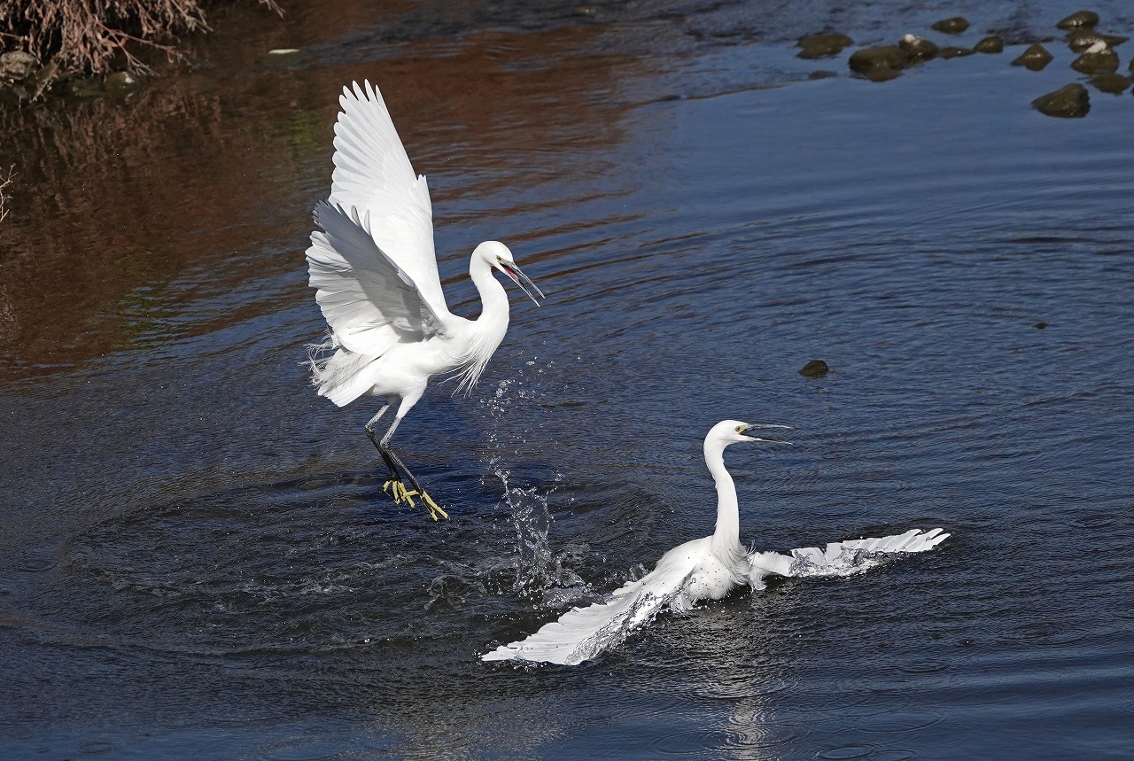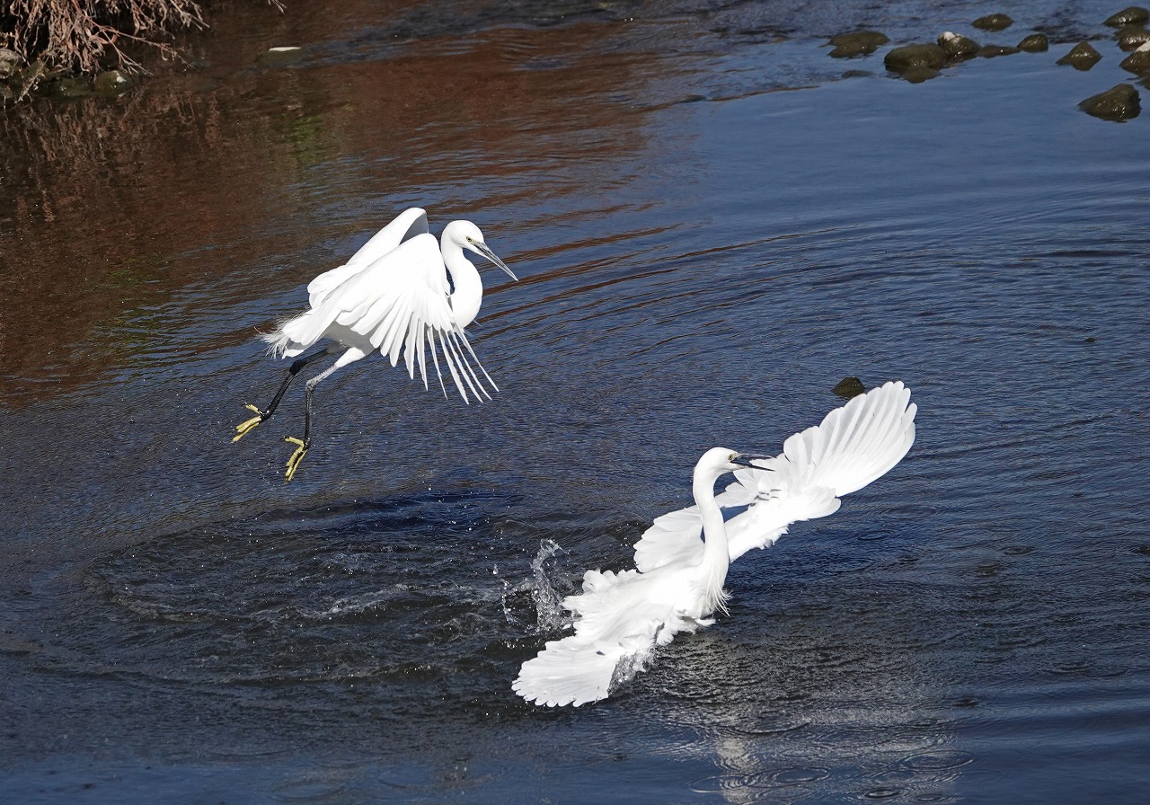 師走の最初の日曜日、裏の多摩川で2羽のコサギがいきなり喧嘩を始めました。Mats