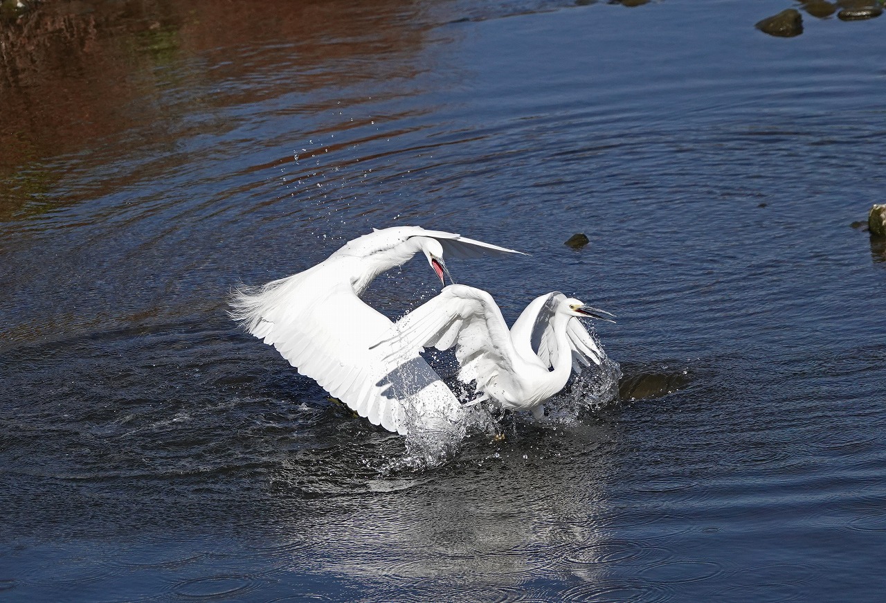 多摩川 コサギの喧嘩