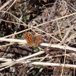 このところ暖かい日が続き、このまま春になるのかと思わせる。だが、まだ2月半ばであり、また寒い日が戻ってくるに違いない。と思いながらも、少し風はあったが多摩川に出てみた。私と同じようにこの暖かさにジッとしていられなかったのか、気のはやいキタテハとヒメアカタテハが低く舞っていた。キタテハはすぐに地面の枯草の上に止まって翅を広げた。
