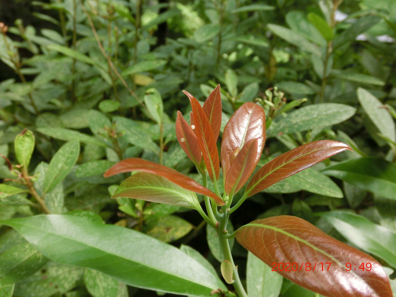 タブノキに産み付けられた卵