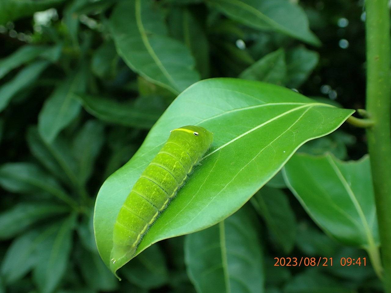 今年ヤブニッケイの葉の上で見つけた幼虫