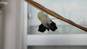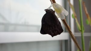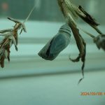 これまで何度も何種類ものチョウの飼育してきたが、羽化の瞬間というのはなかなか写真には残せていなかった。いつものことだが、羽化の瞬間を見ようとジッと待機していても僅かな隙に見事にタイミングを外され、蛹の殻から出てくるところも易々と見ることはできていなかった。ましてや、写真には。見られているチョウの方が何か気配を感じて、その瞬間を見られまいとしているようにさえ思えるほどだ。しかし、今回は先般来飼育していたクロコノマチョウが蛹の殻を破って羽化を始めるところから見ることができたので紹介する。