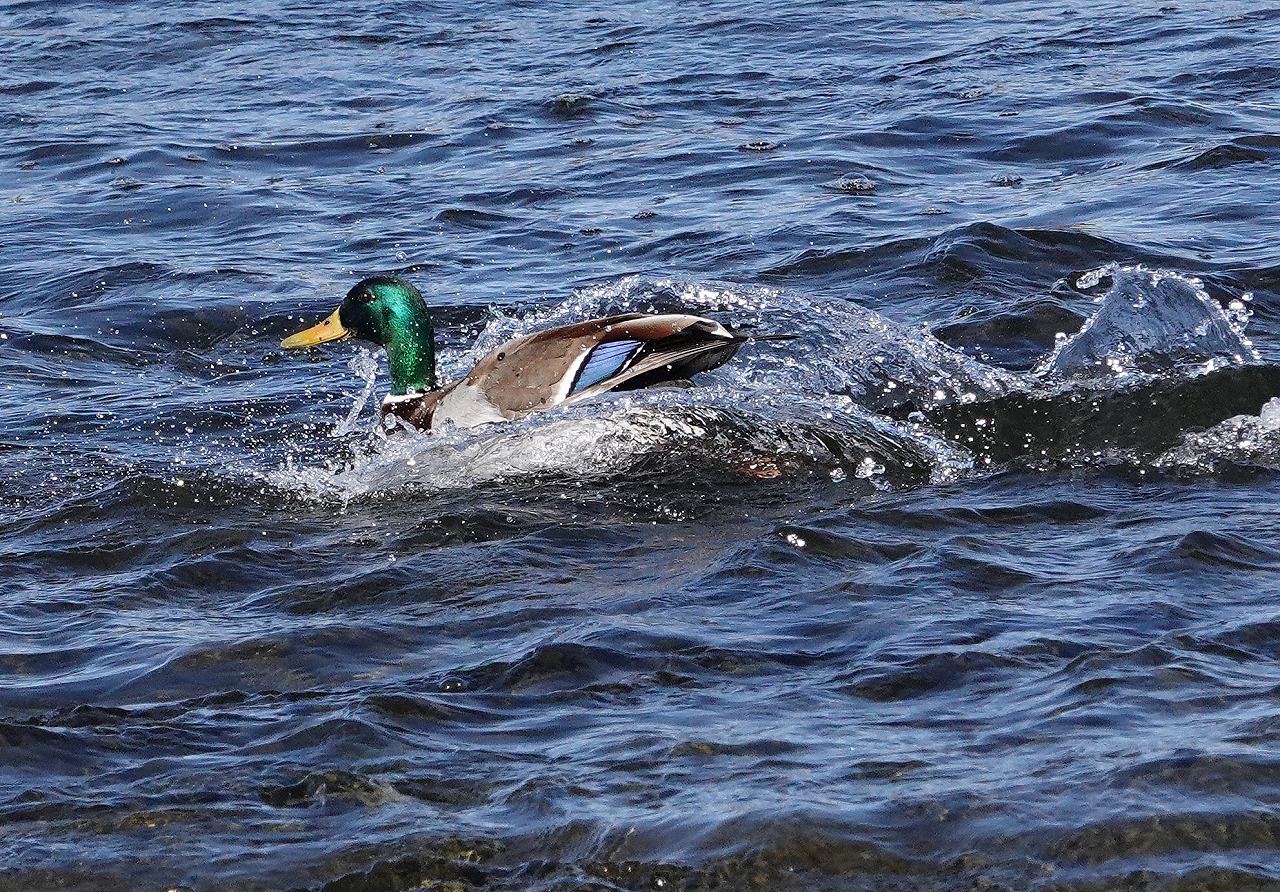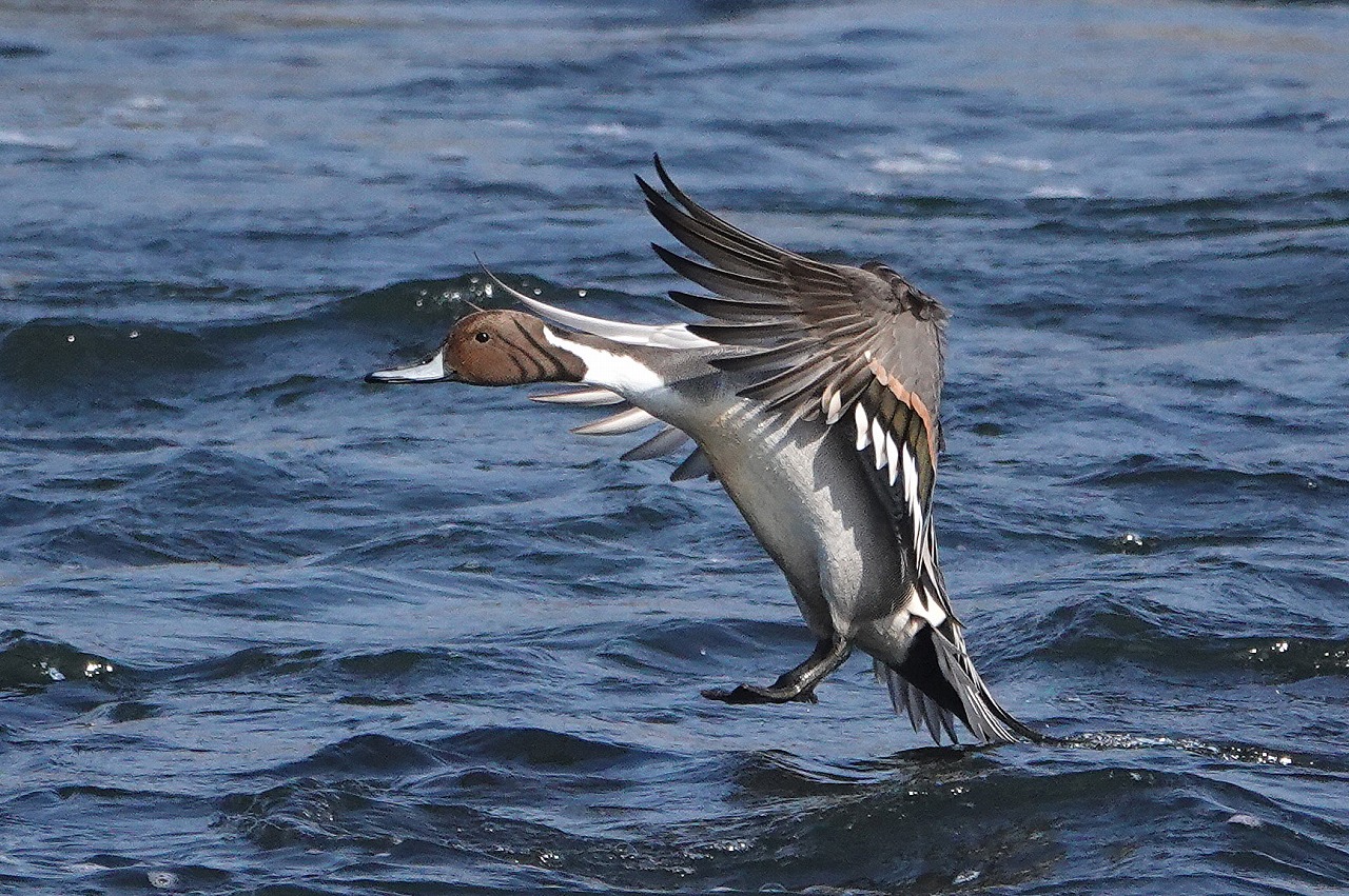 ↓ オナガガモの翼鏡は鈍い緑 (アーカイブ 2025年1月24日 宿河原堰)