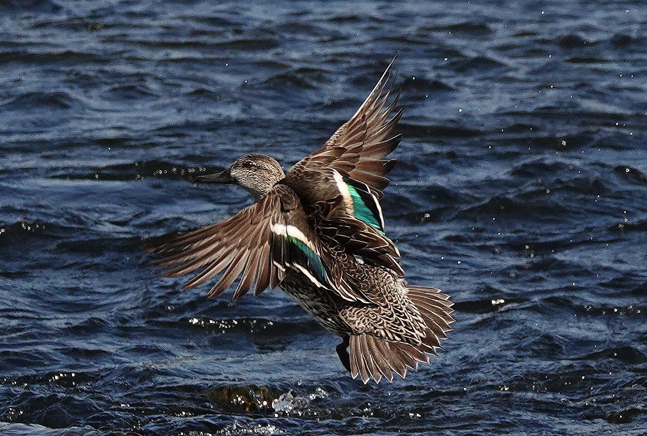 ↓ コガモの翼鏡は美しい緑 (アーカイブ 2023年12月25日 宿河原堰)