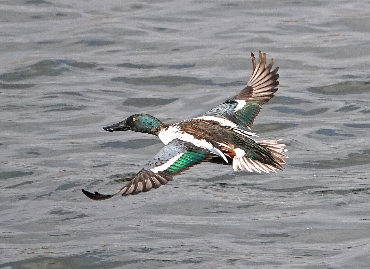 ↓ ハシビロガモの翼鏡は緑 (アーカイブ 2024年3月8日 聖蹟桜ヶ丘)