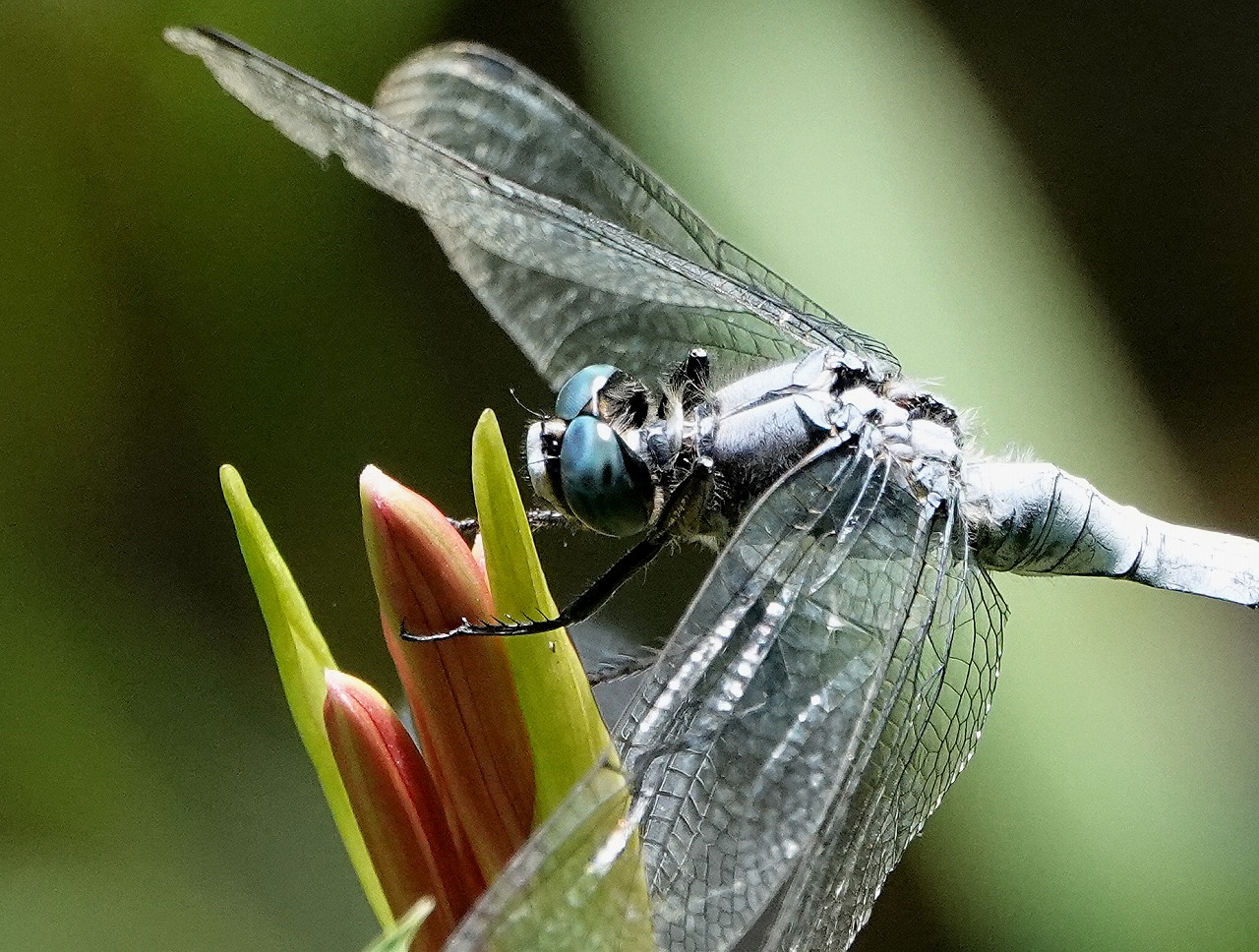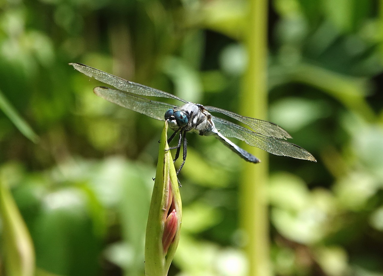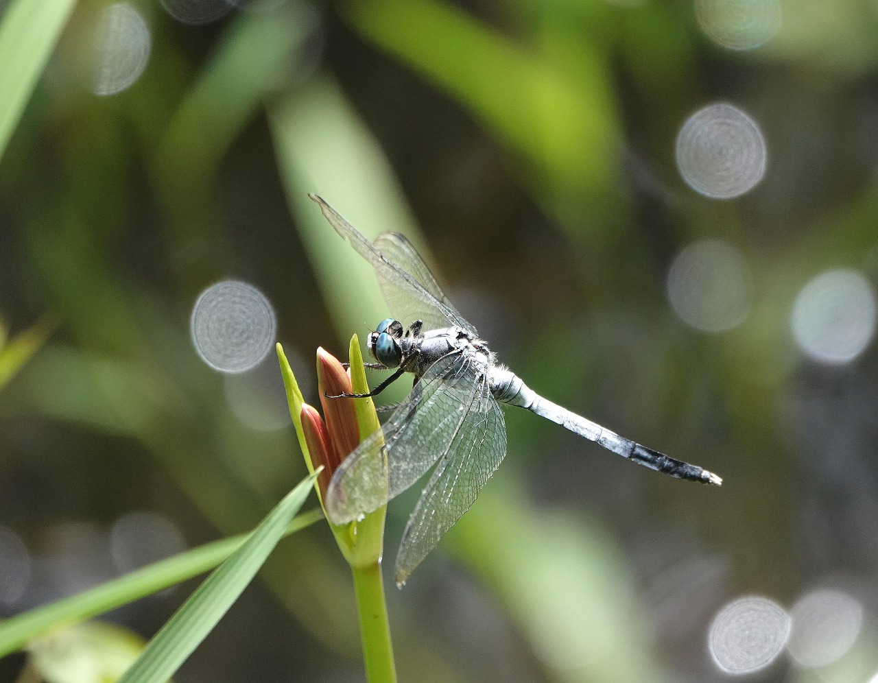 ↓ シオカラトンボ。吸蜜するわけではないが、尖ったものが好きな習性から蕾のさきによくとまる