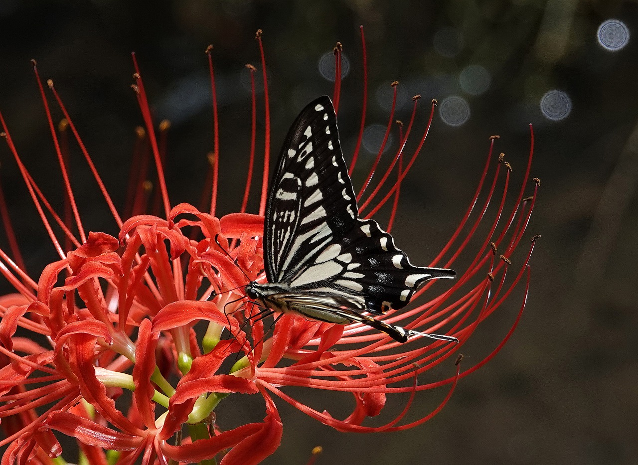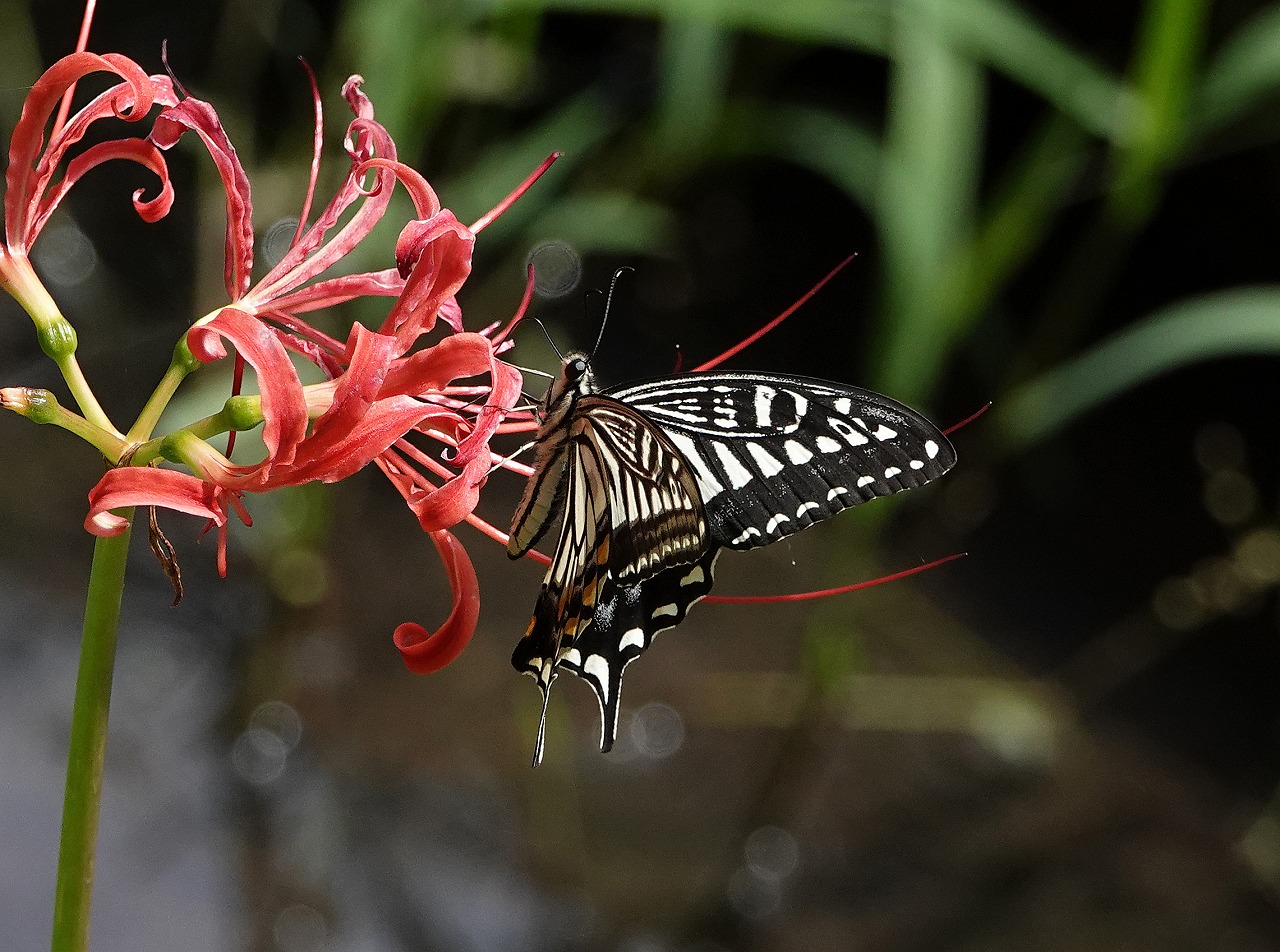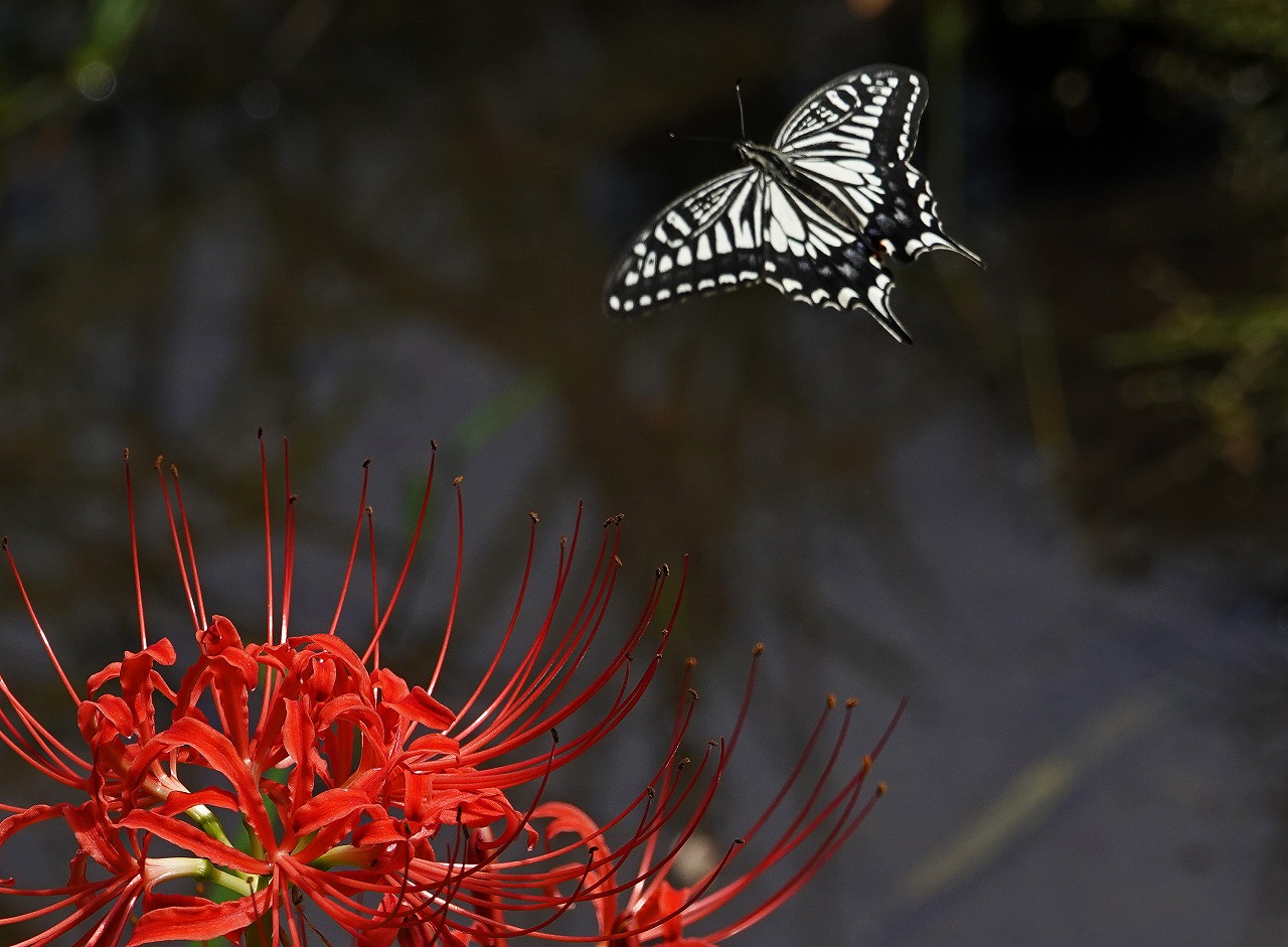 彼岸の頃になると必ずちゃんと咲く彼岸花、マンジュシャゲに飛来する蝶やトンボの話題です。Mats