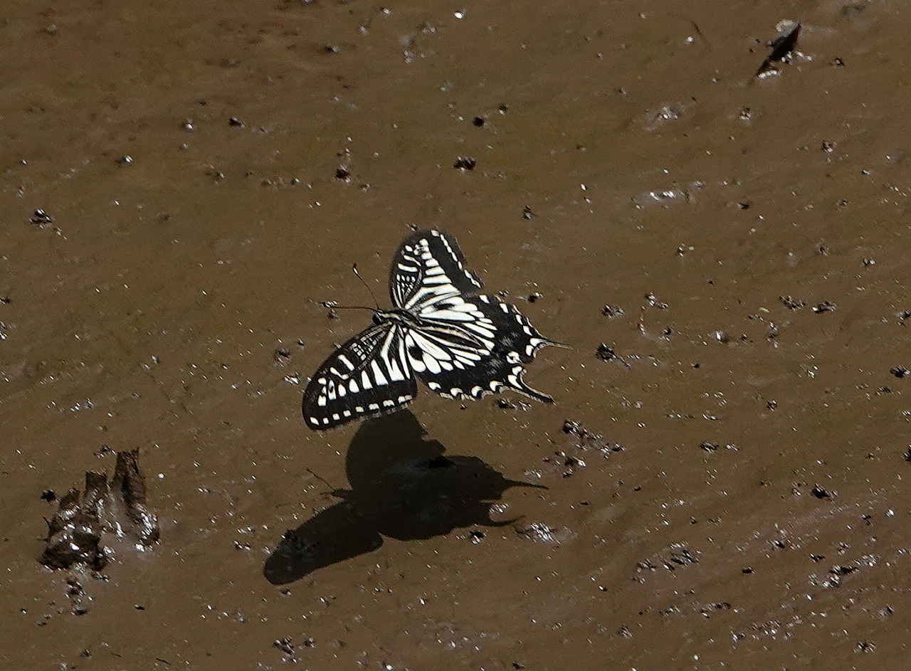↓ この日の唯一の蝶写真。田植えが始まっていたが水田のアゲハ