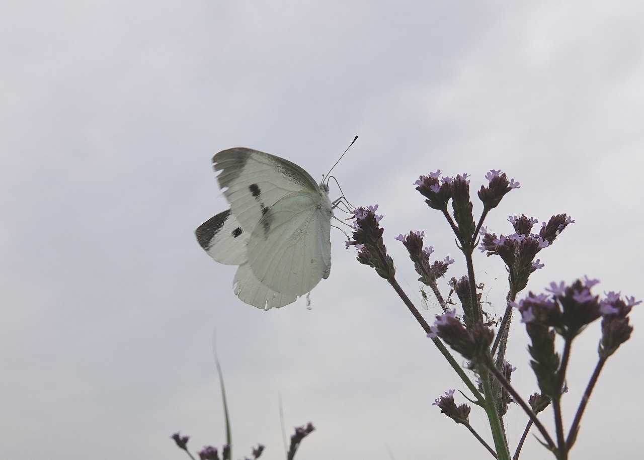 ↓ アレチハナガサで吸蜜するモンシロチョウ