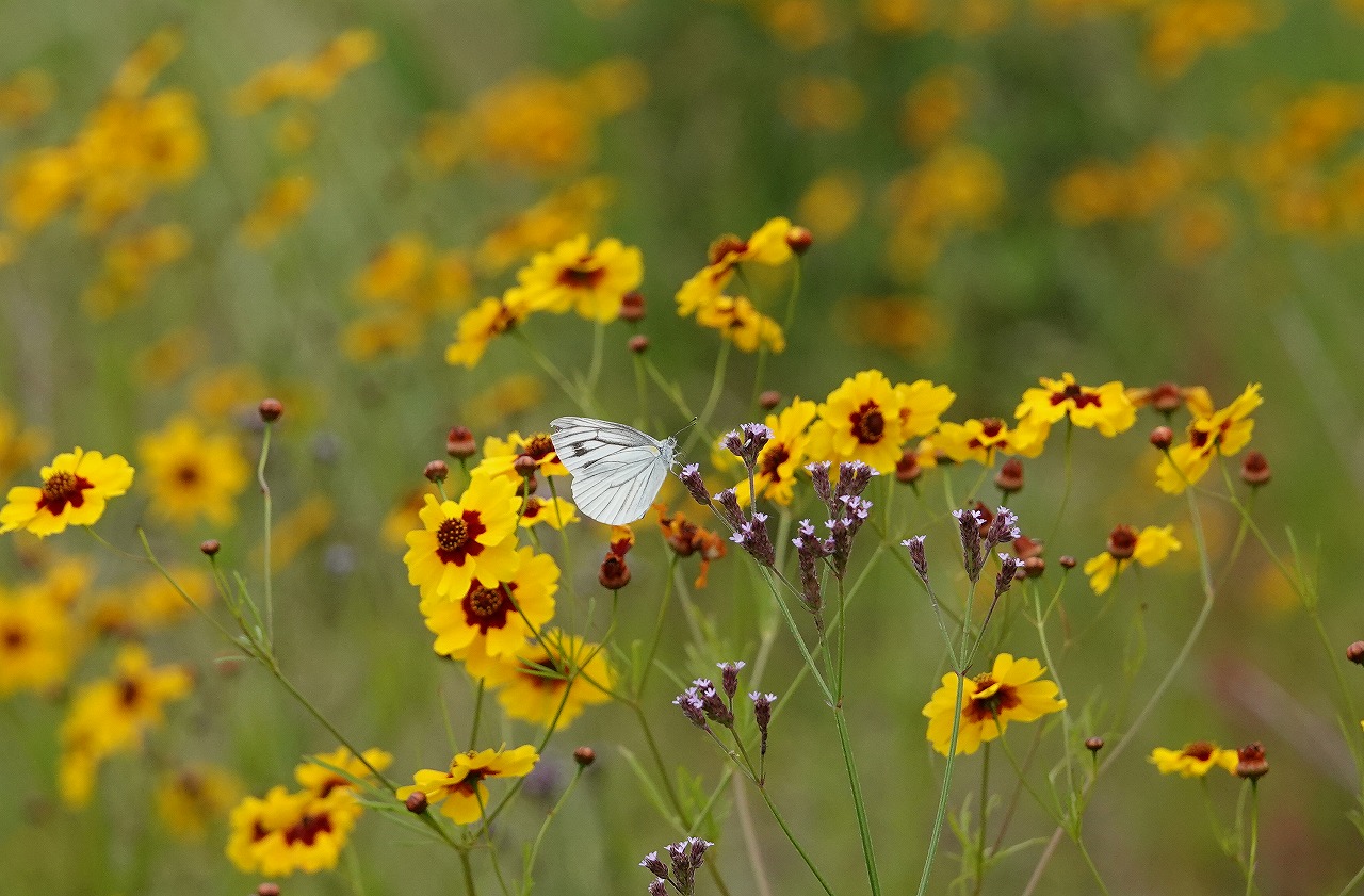↓ ハルシャギクで吸蜜するモンシロチョウ