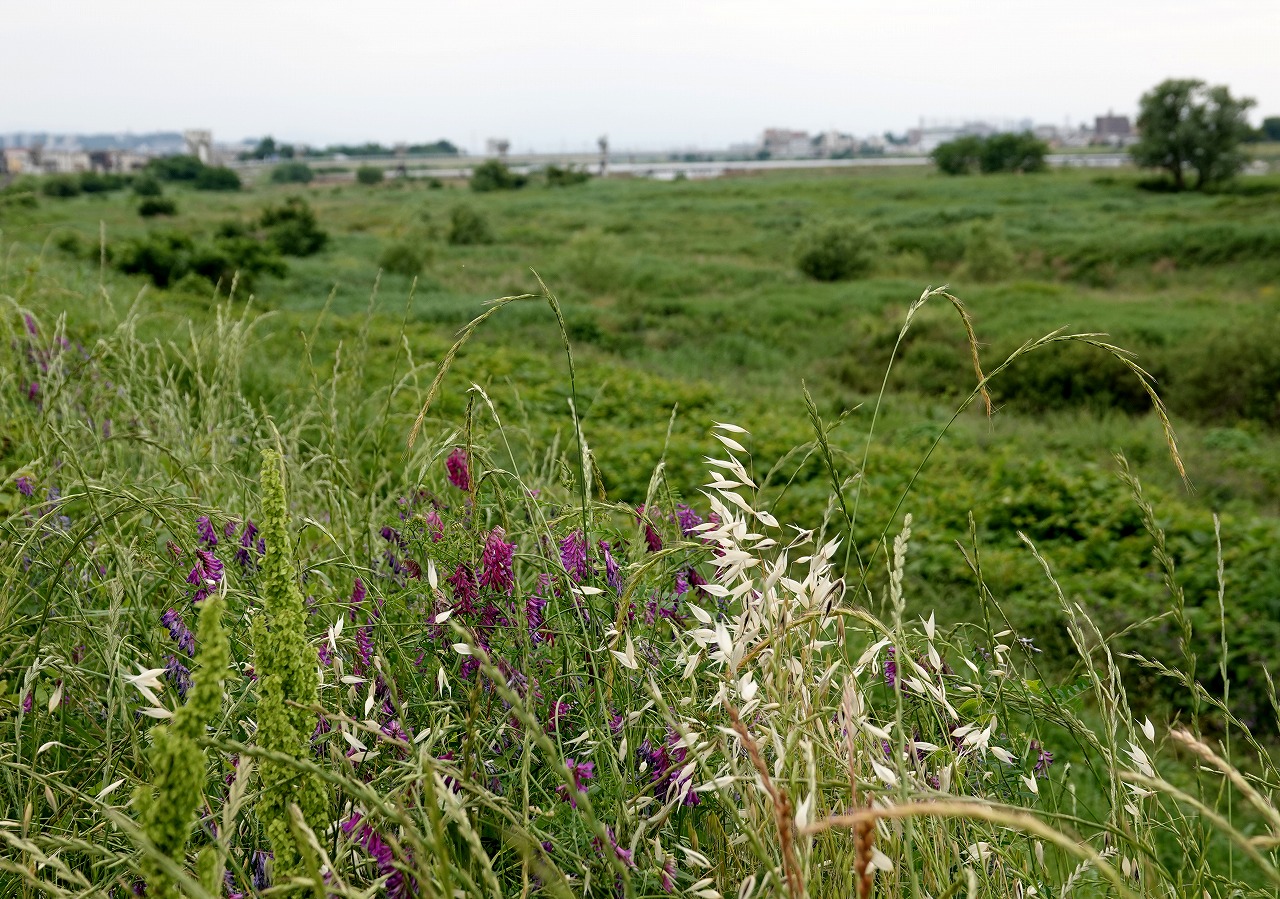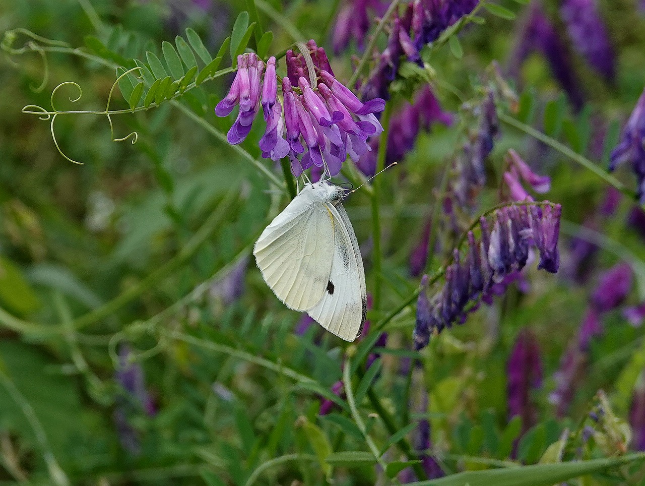 河川敷のかなり大きな範囲を一時期紫に染めていたナヨクサフジは既に盛りを過ぎたが土手廻りではまだまだたくさん咲いている。トップはナヨクサフジで吸蜜するモンシロチョウ。