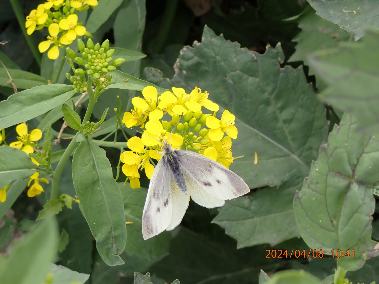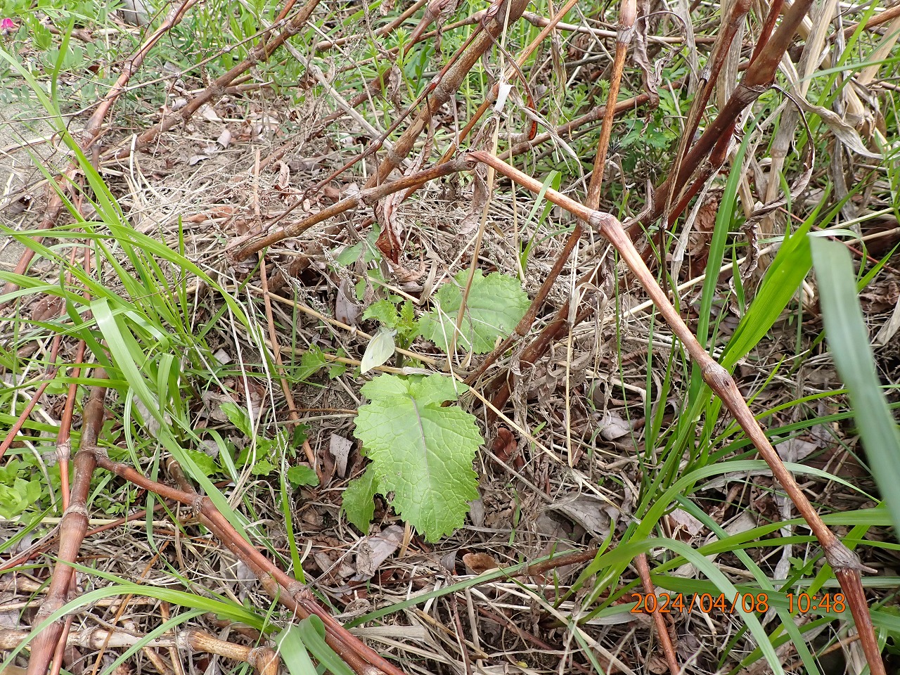 ようやく暖かい日も増えて、河川敷にはあちこちに野生の菜の花が咲いていてモンシロチョウが忙しく飛び交っている。花で吸蜜しているかと思えば、さかんに産卵場所を探しているものもいる。そんな中とても小さい貧相な株の葉裏に何度も何度も卵を産み付けているメスがいた。周りには立派な葉をもつ株もあるのに、なぜかよほど気に入った場所のようで、チョウが飛び去った後小さな葉を裏返してみるとなんと4つも卵があった。悪いがそのままその葉をちぎって家に持ち帰った。育ててみよう。