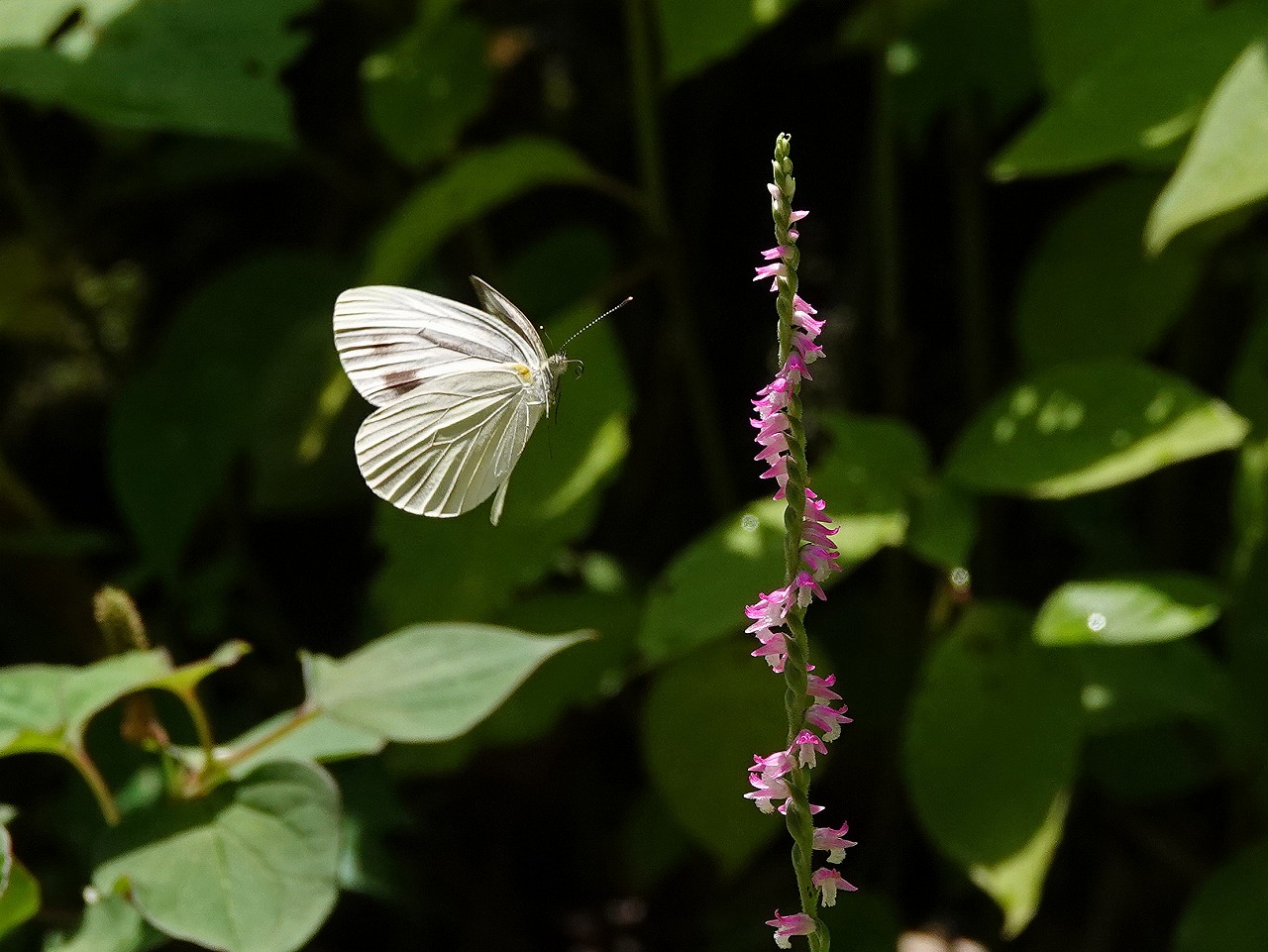 ↓ 実は、ネジバナに飛来する蝶がいないか探していたのだが鳴かず飛ばずだった (スジグロシロチョウ アーカイブ 生田緑地 2024年6月25日)