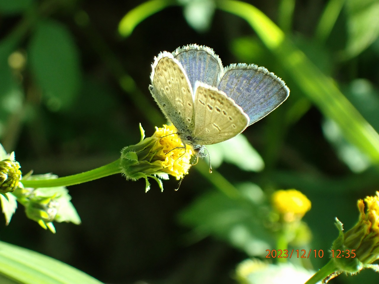 ヤマトシジミは残り少なくなってきたコセンダングサの花で吸蜜中。