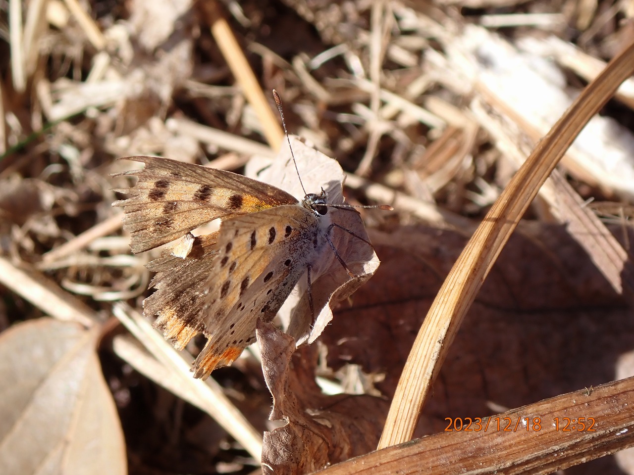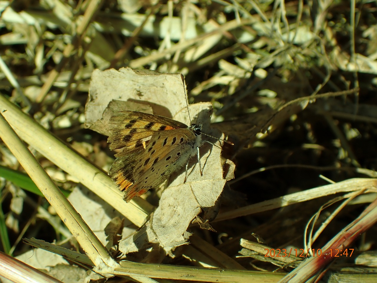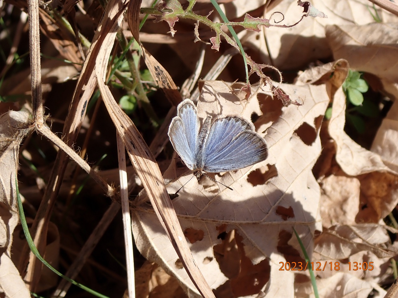 昨年の晩秋・初冬は暖かい日が比較的多く、12月に入ってもなお日中は気温20度前後の日が何日もありました。しかし、日を追うごとに見られるチョウの種類・数ともに確実に減り、越冬するものを除くとヤマトシジミとベニシジミくらいに限られてきます。