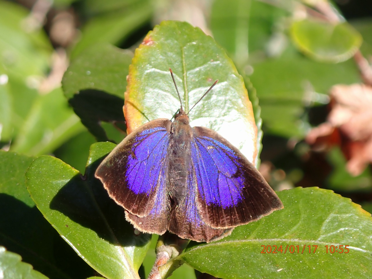 これは私が今年初めて出会ったチョウ、ムラサキシジミです。昨日、生田緑地にて。
